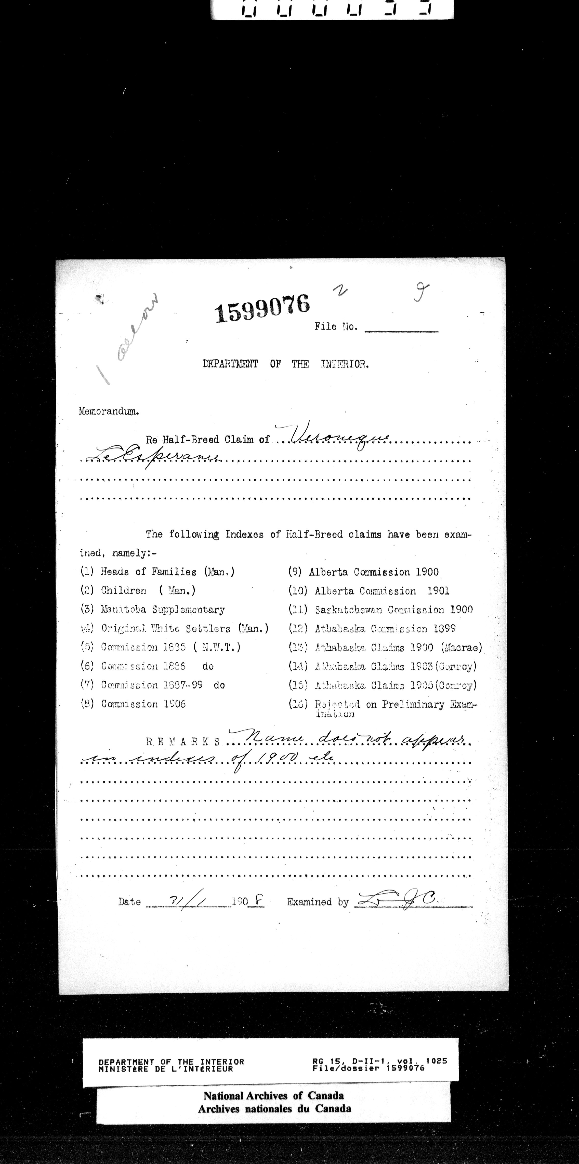 Dominion Lands Branch - Correspondence Files - 14601