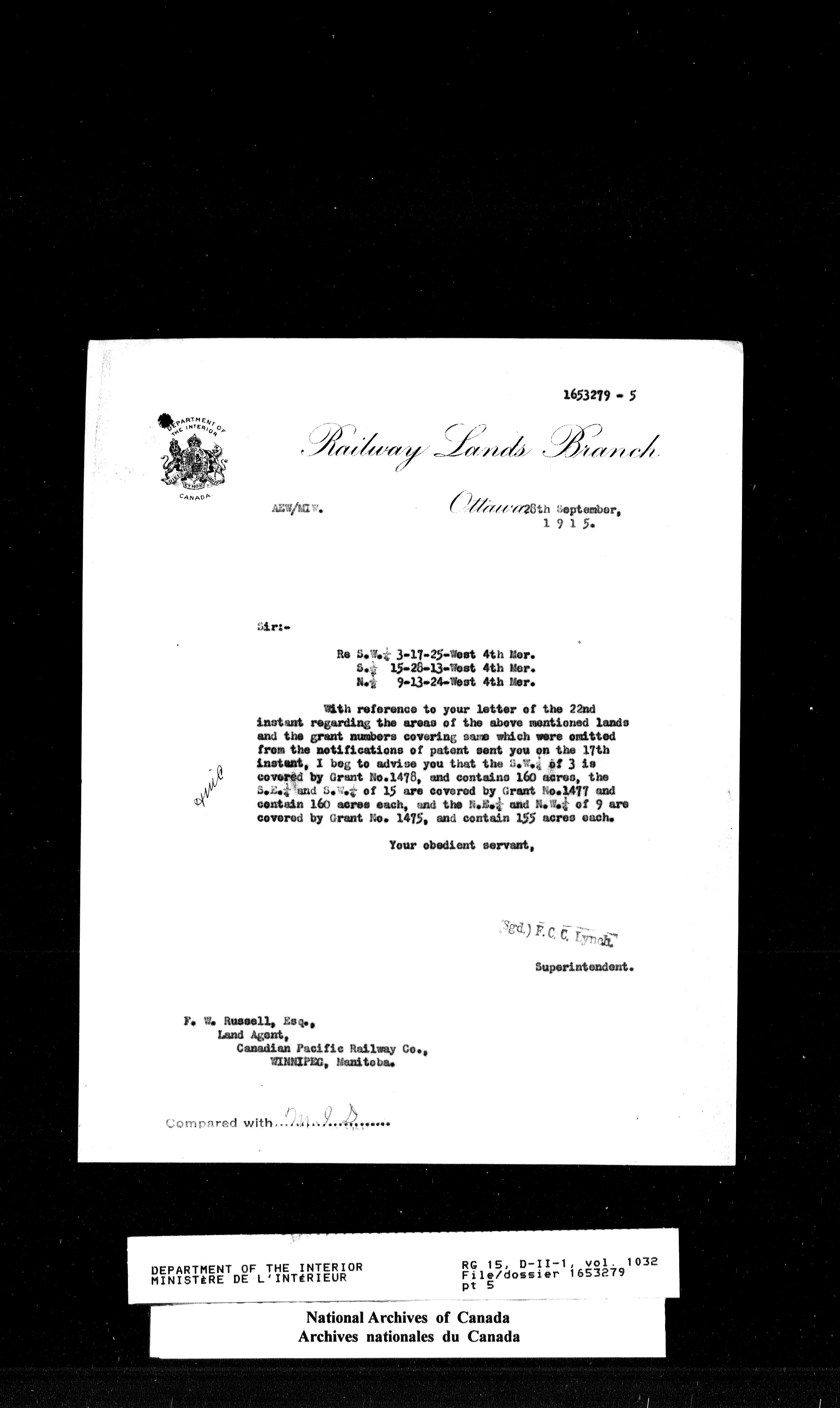 Dominion Lands Branch - Correspondence Files - 14605
