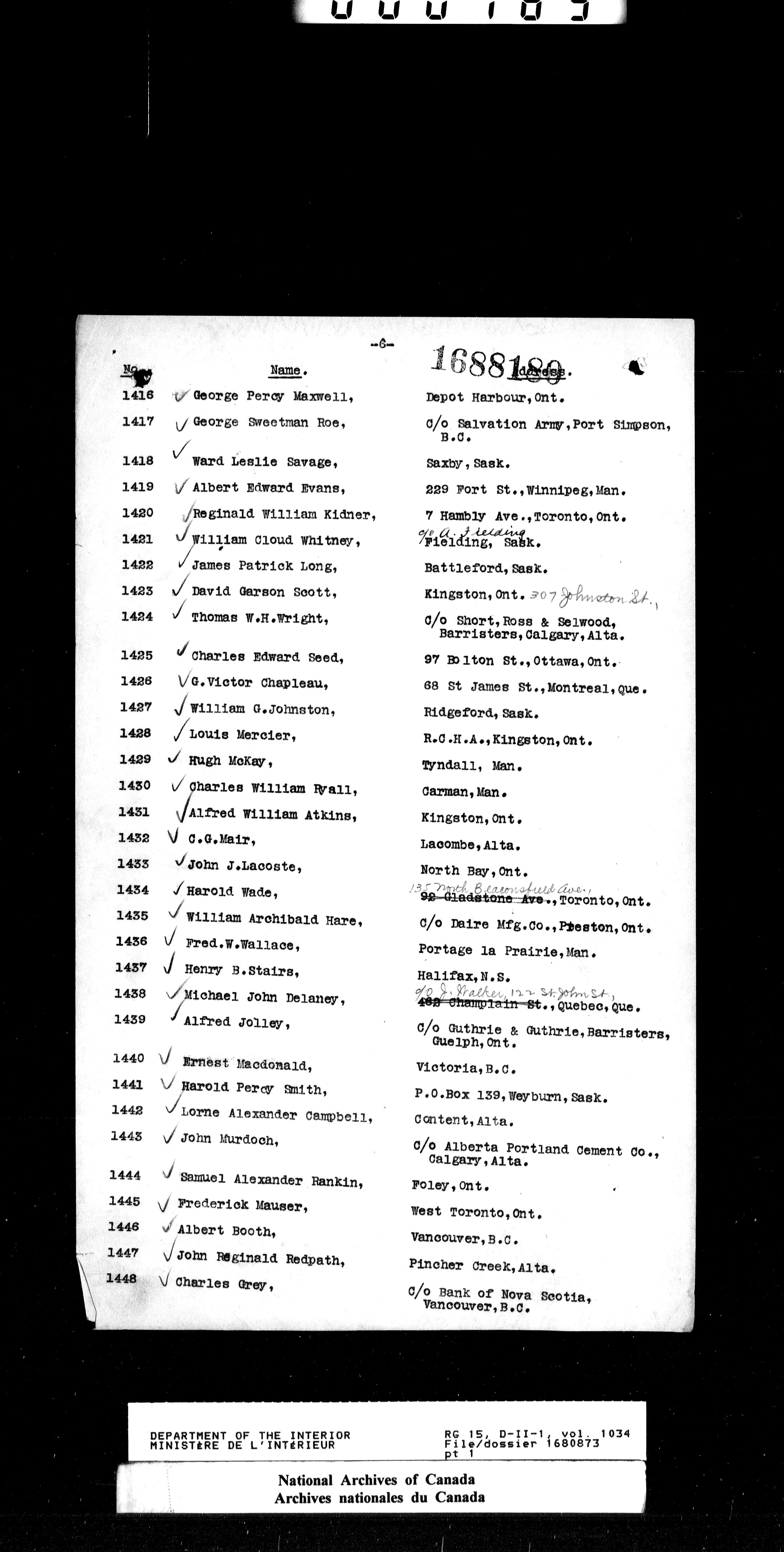 Dominion Lands Branch - Correspondence Files - 14608