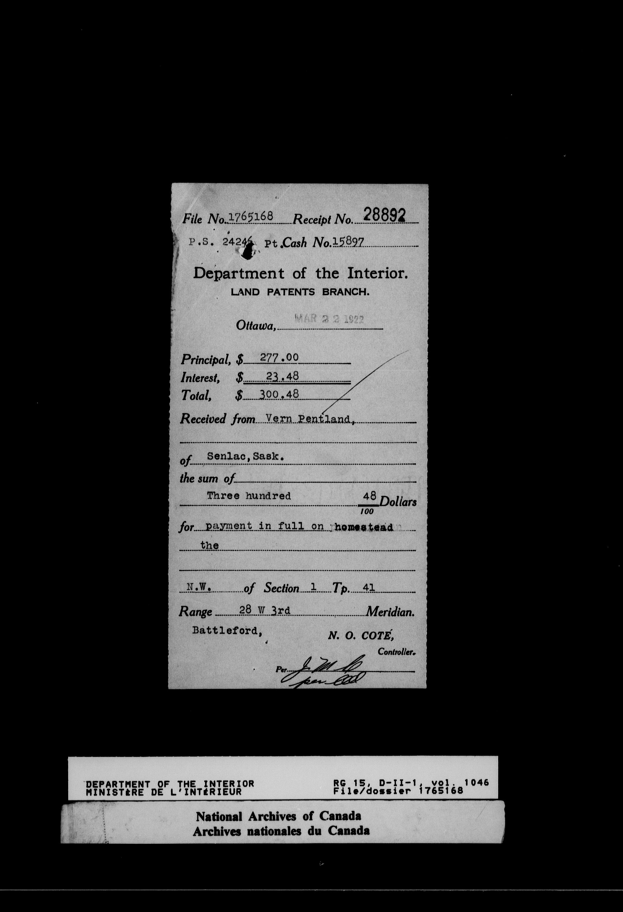 Dominion Lands Branch - Correspondence Files - 14617