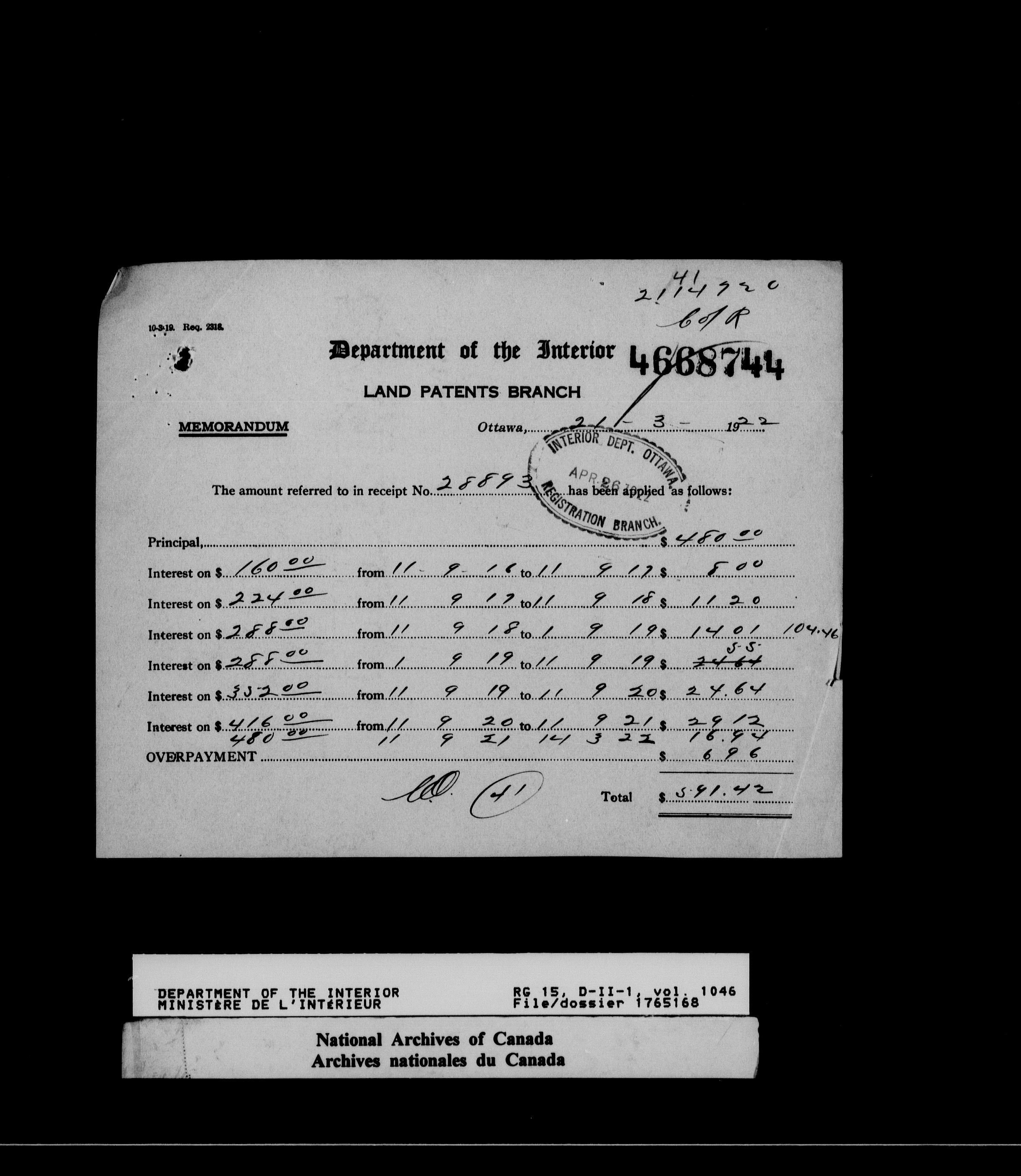 Dominion Lands Branch - Correspondence Files - 14617