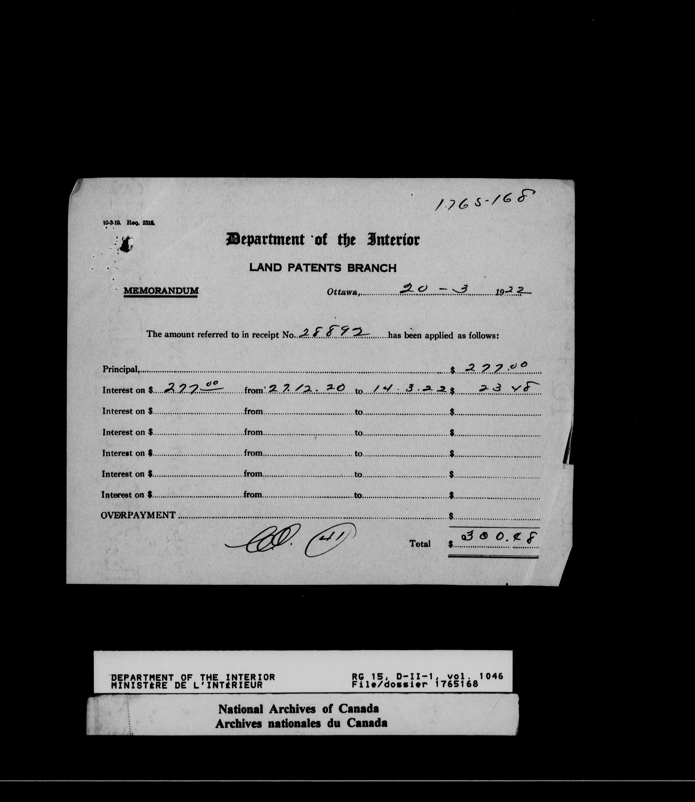 Dominion Lands Branch - Correspondence Files - 14617
