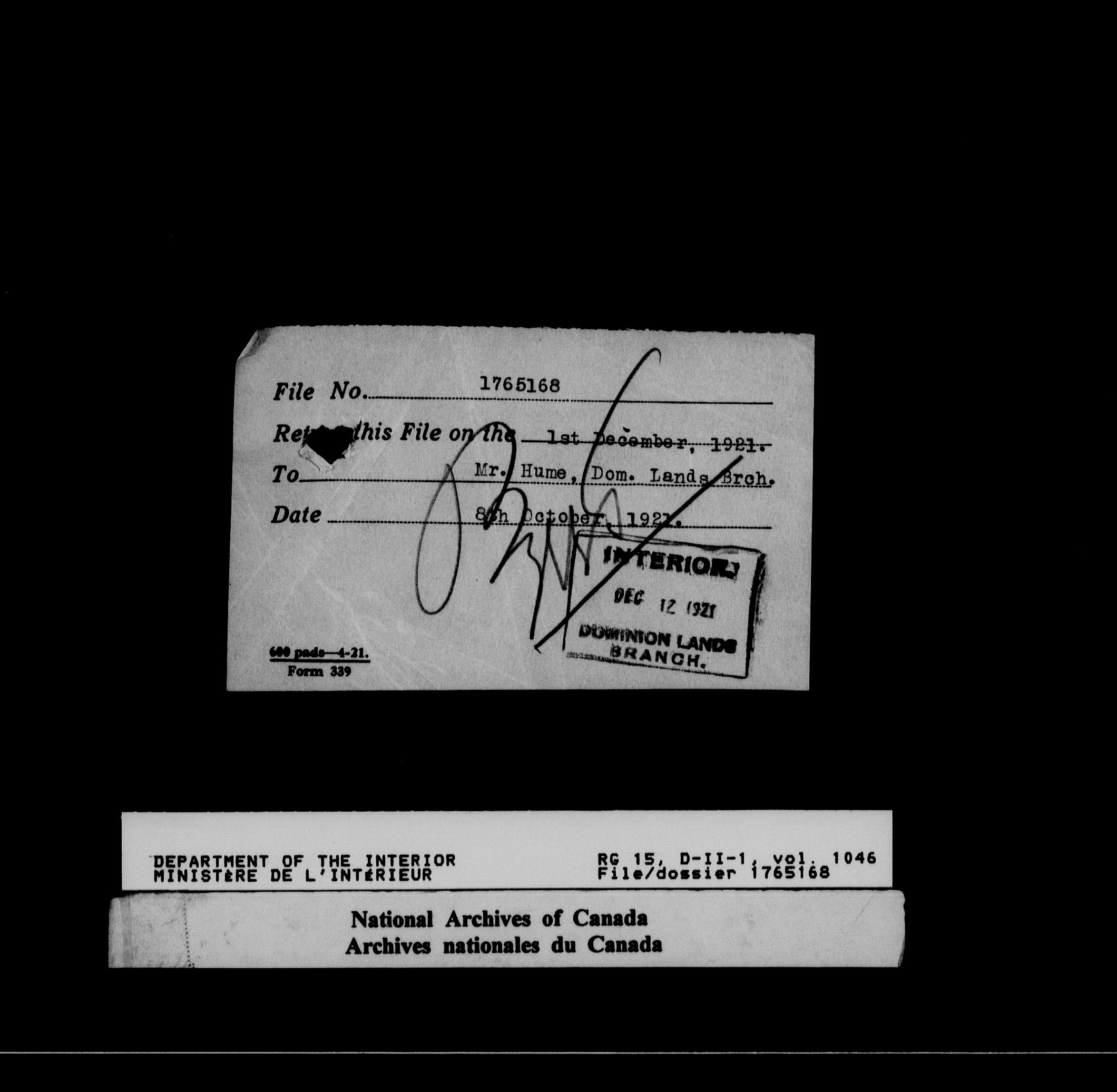 Dominion Lands Branch - Correspondence Files - 14617