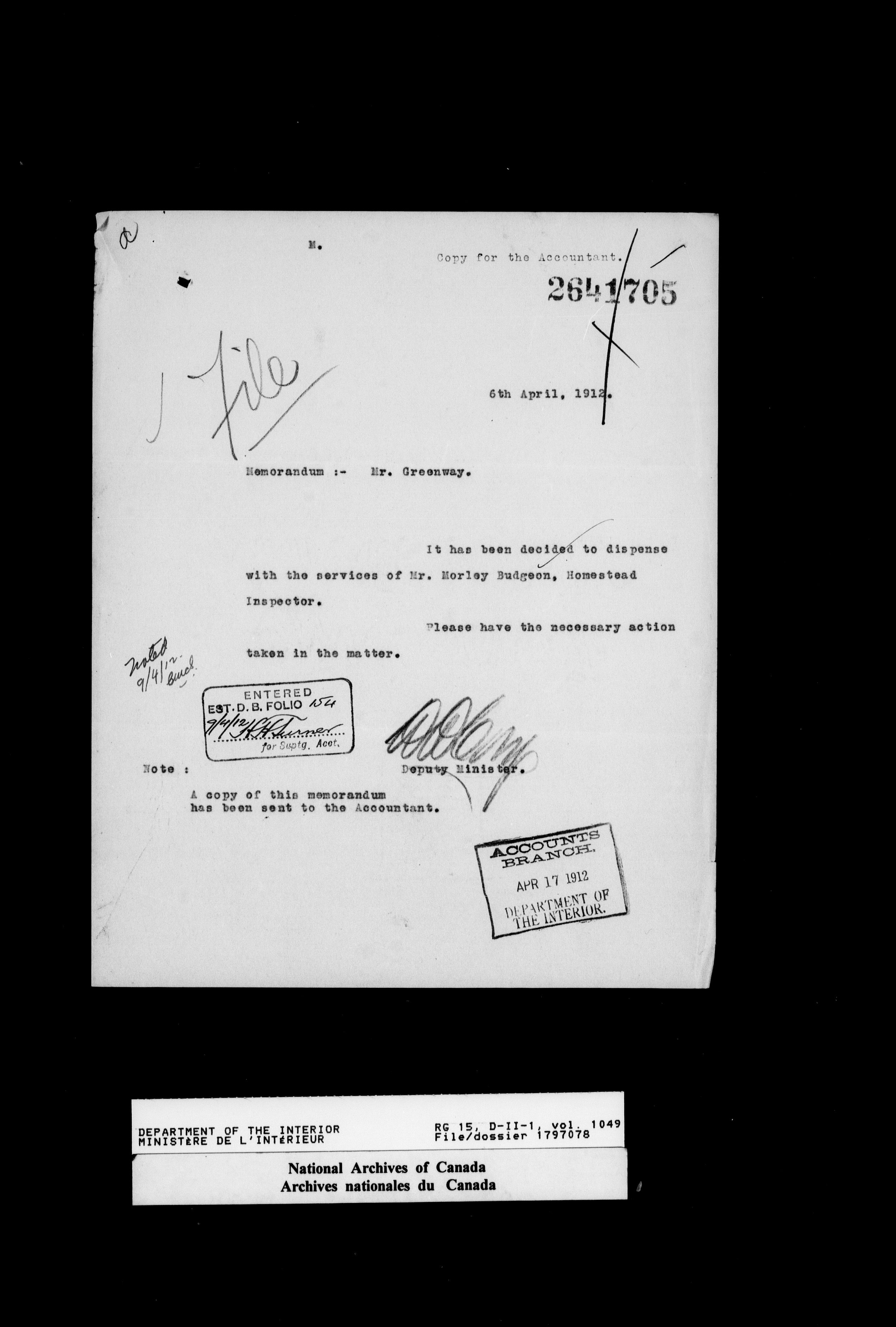 Central registry subject files created by the Dominion Lands Branch - 14620