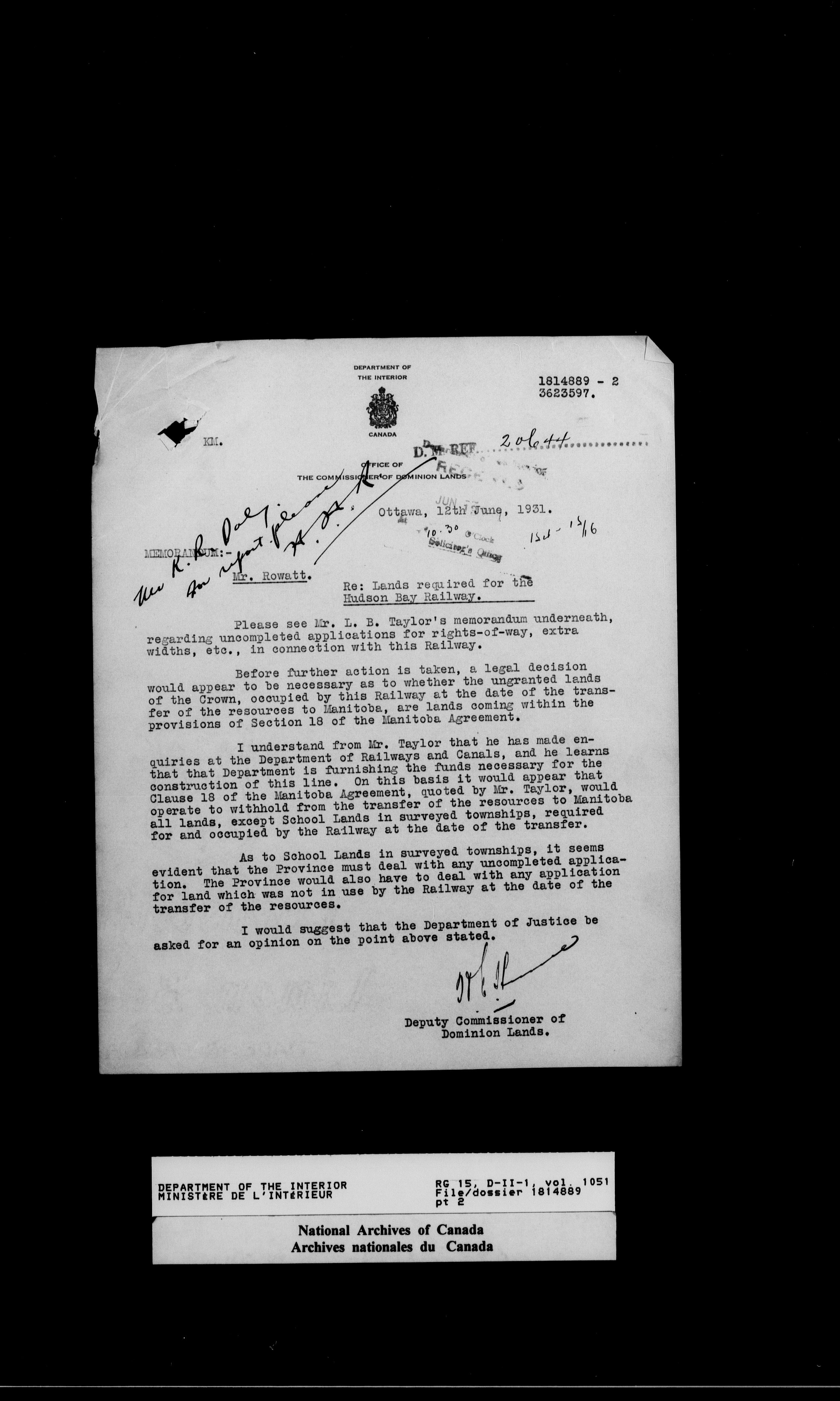 Central registry subject files created by the Dominion Lands Branch - 14621
