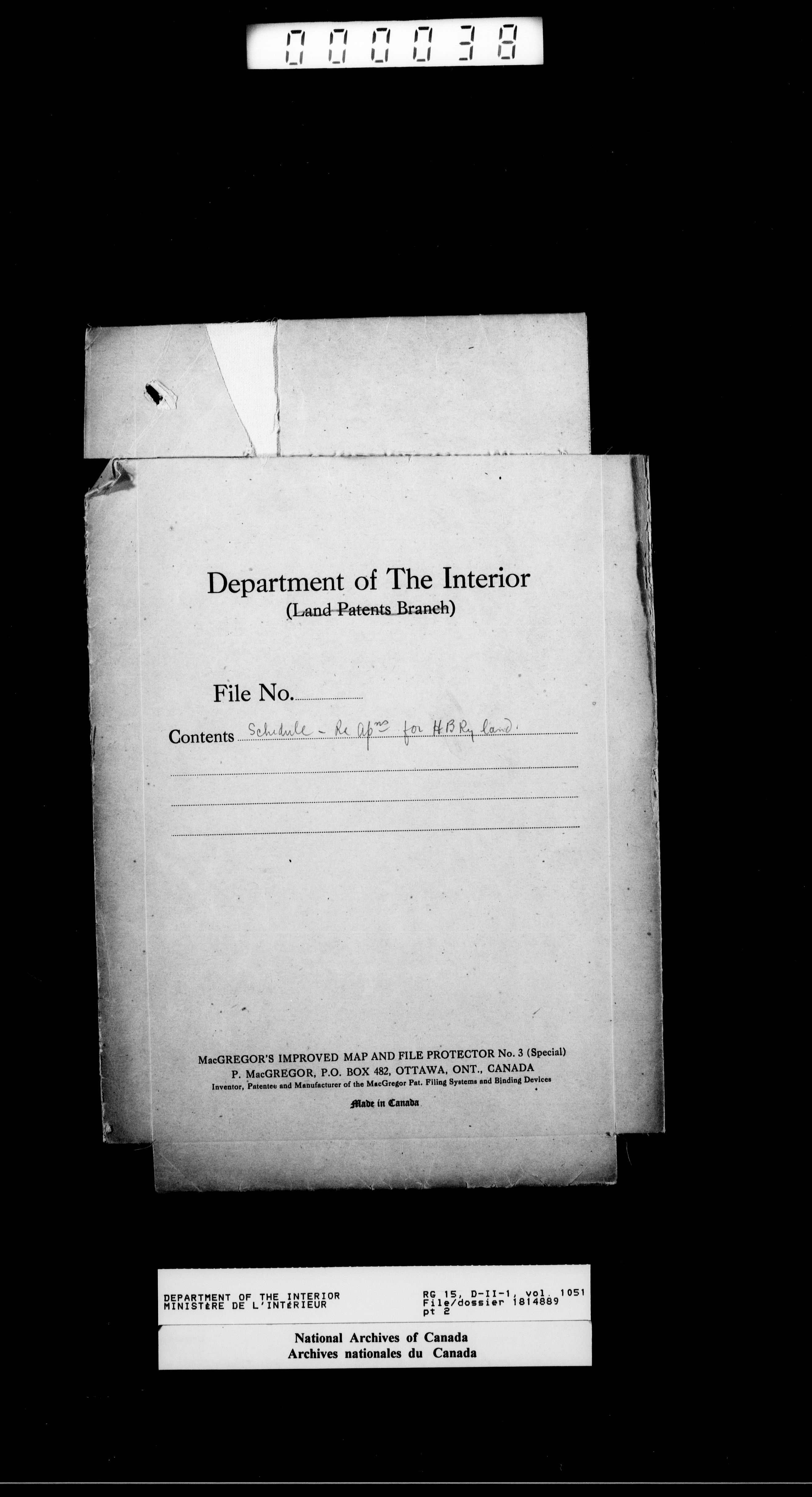 Central registry subject files created by the Dominion Lands Branch - 14621