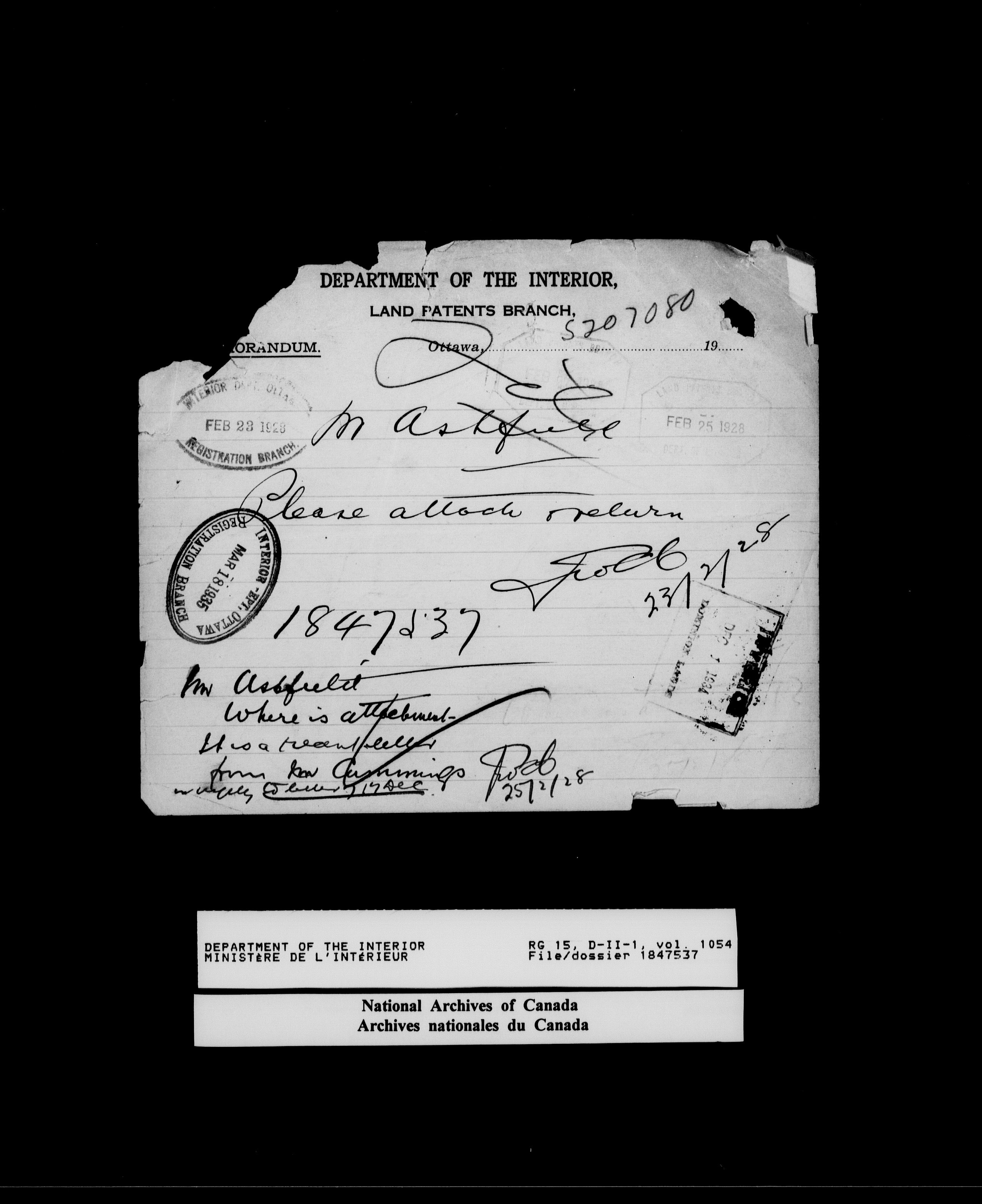 Central registry subject files created by the Dominion Lands Branch - 14624