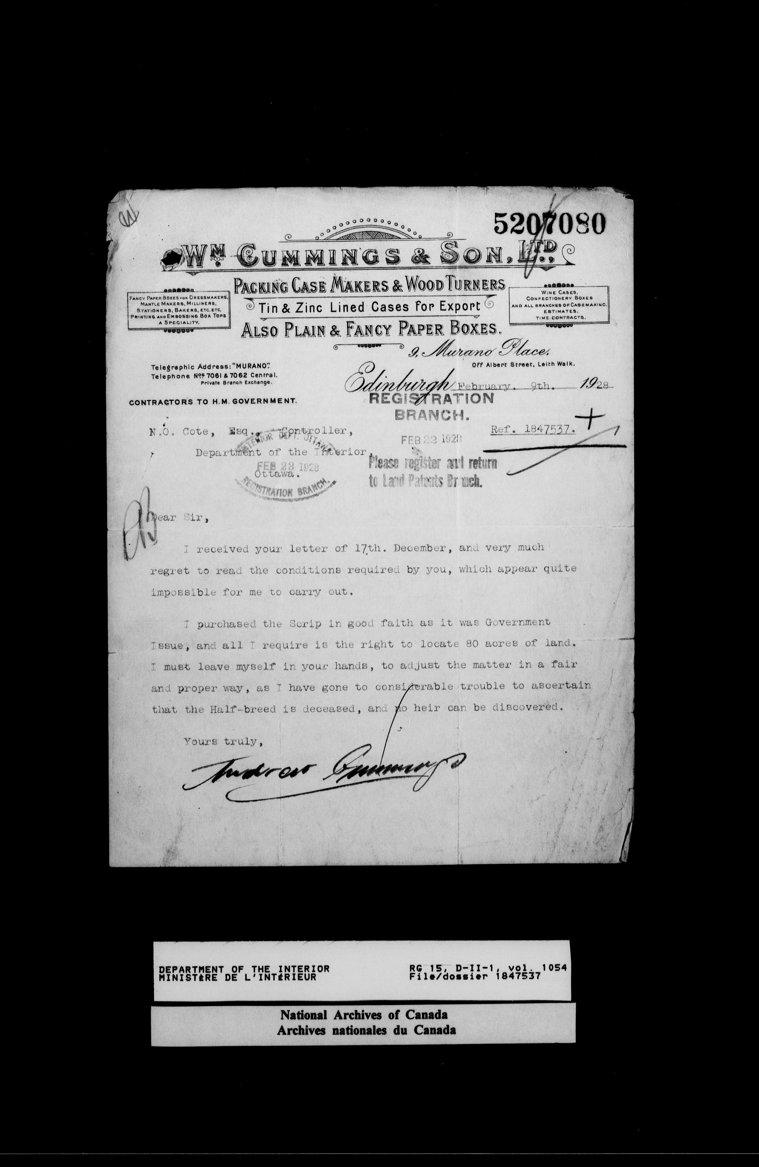 Central registry subject files created by the Dominion Lands Branch - 14624