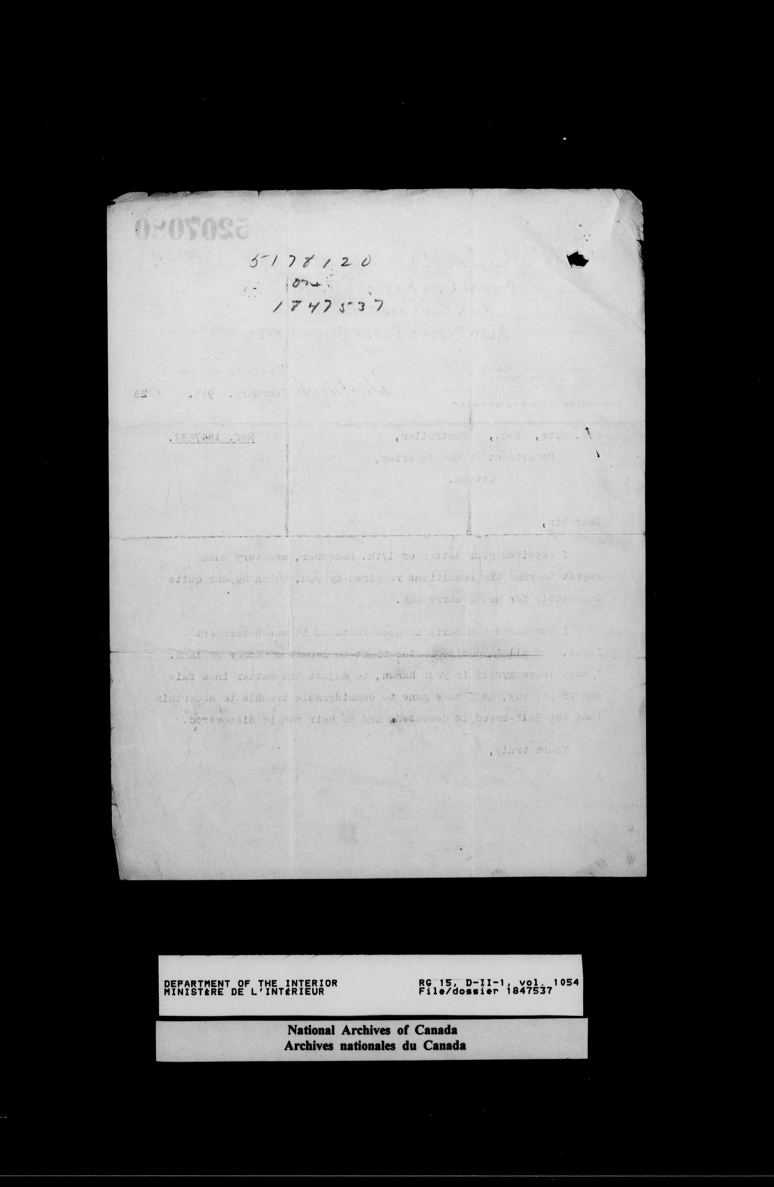 Central registry subject files created by the Dominion Lands Branch - 14624