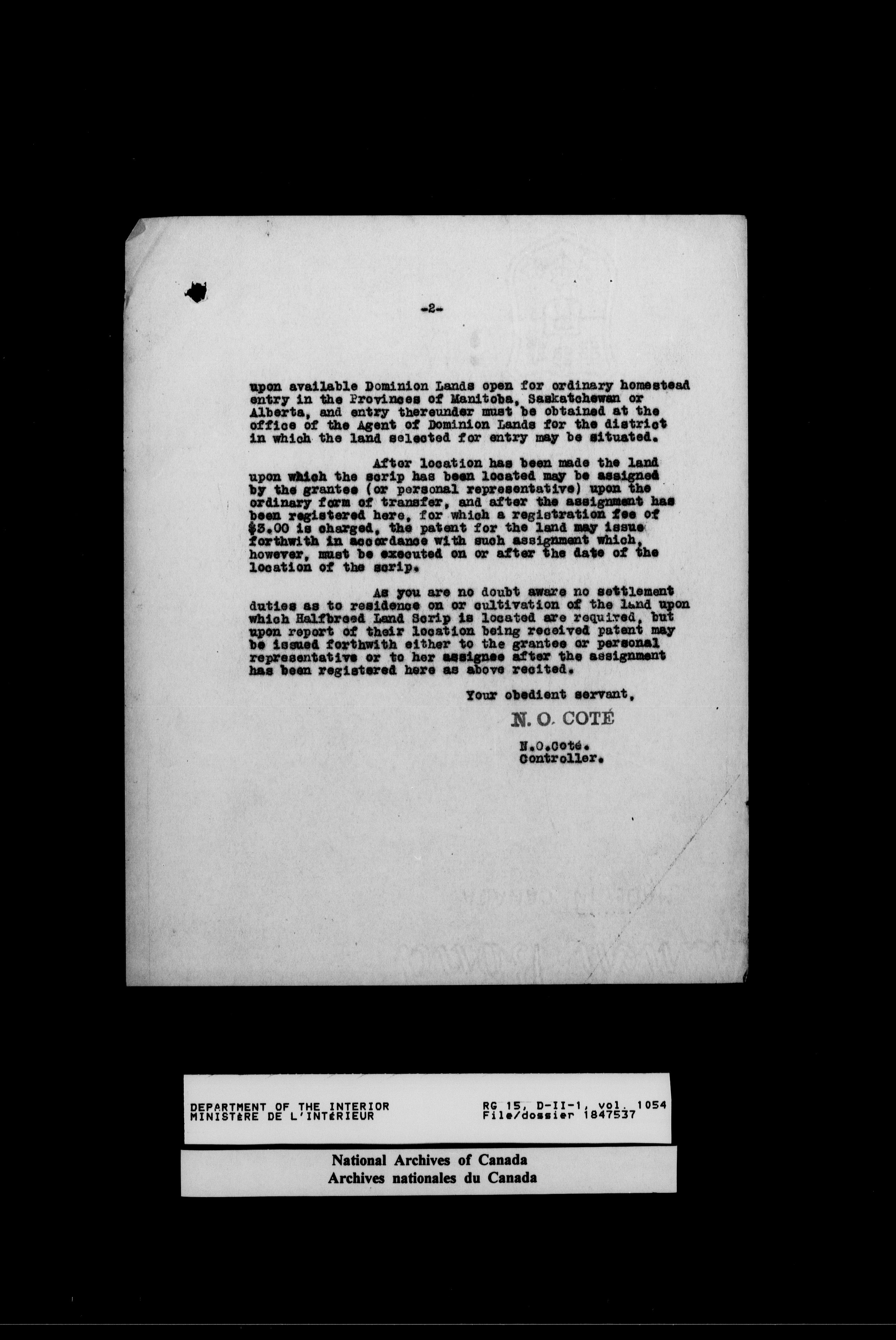 Central registry subject files created by the Dominion Lands Branch - 14624