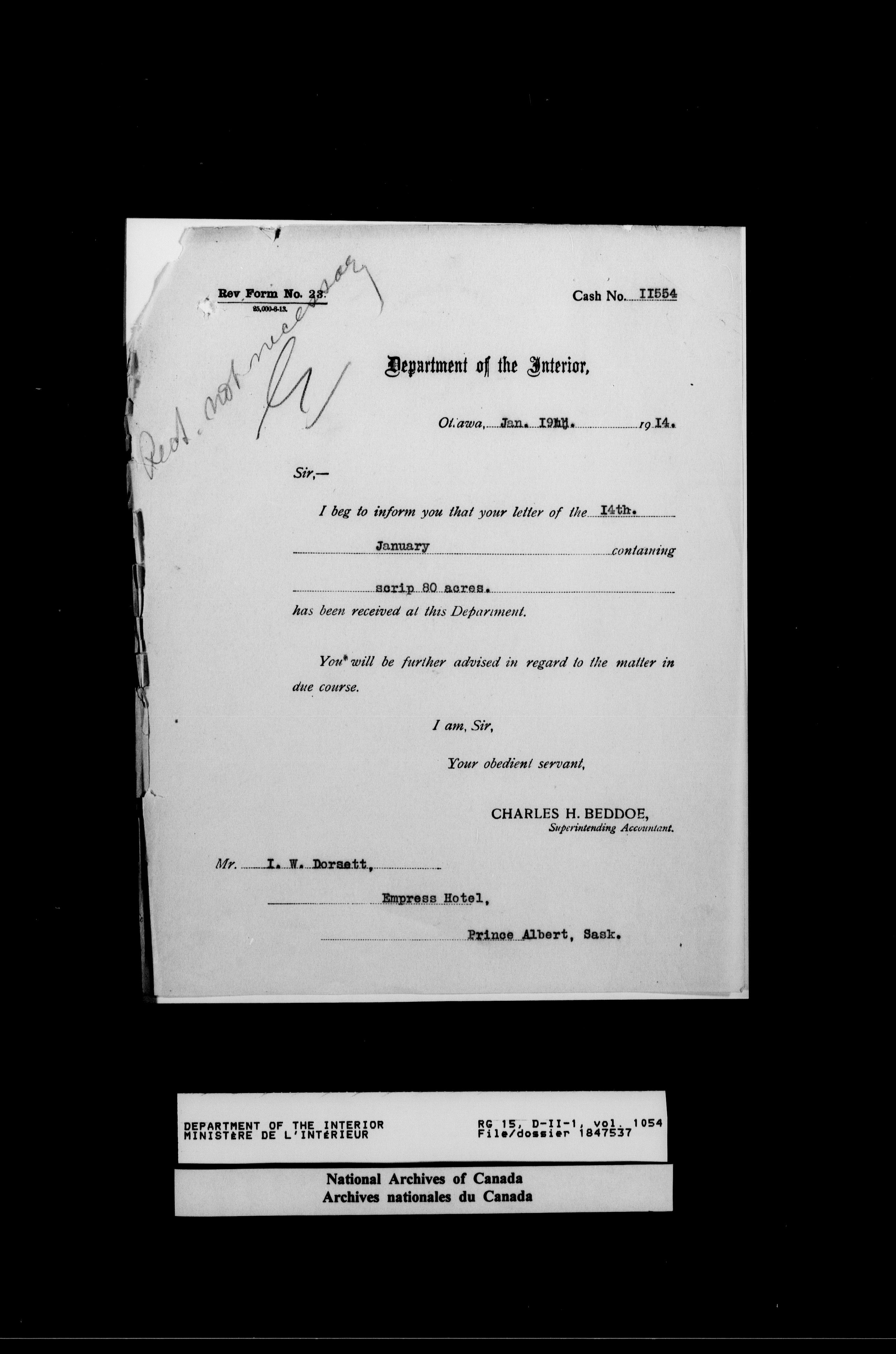 Central registry subject files created by the Dominion Lands Branch - 14624