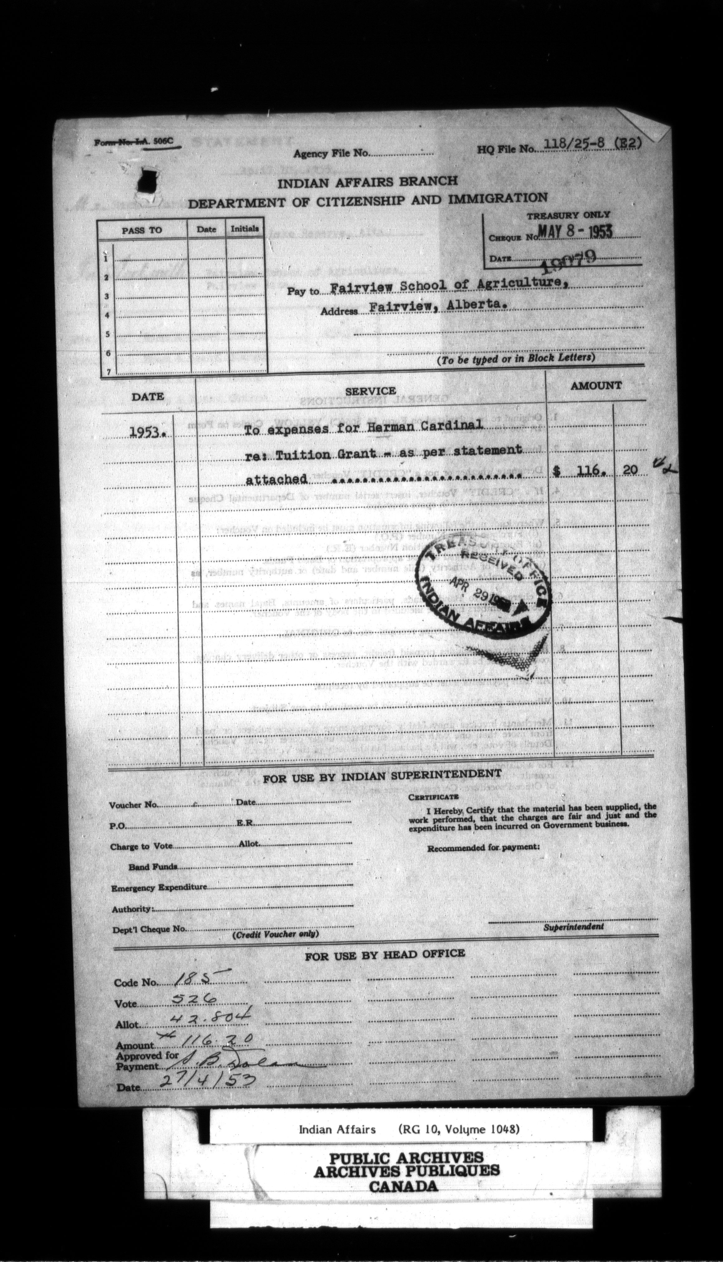 Department of Indian Affairs : General accounts, 1846-1979 : T-1463