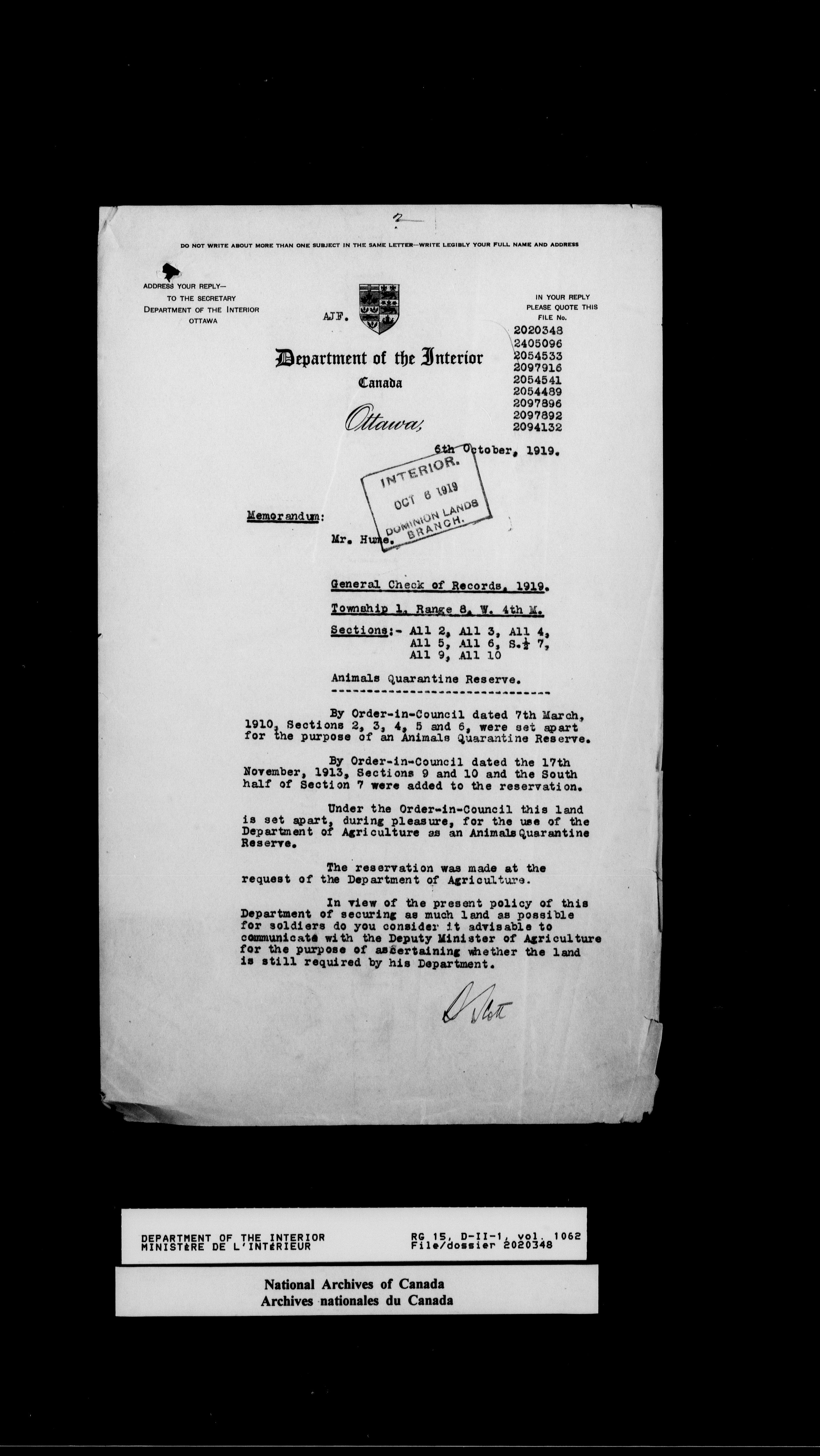 Central registry subject files created by the Dominion Lands Branch - 14630