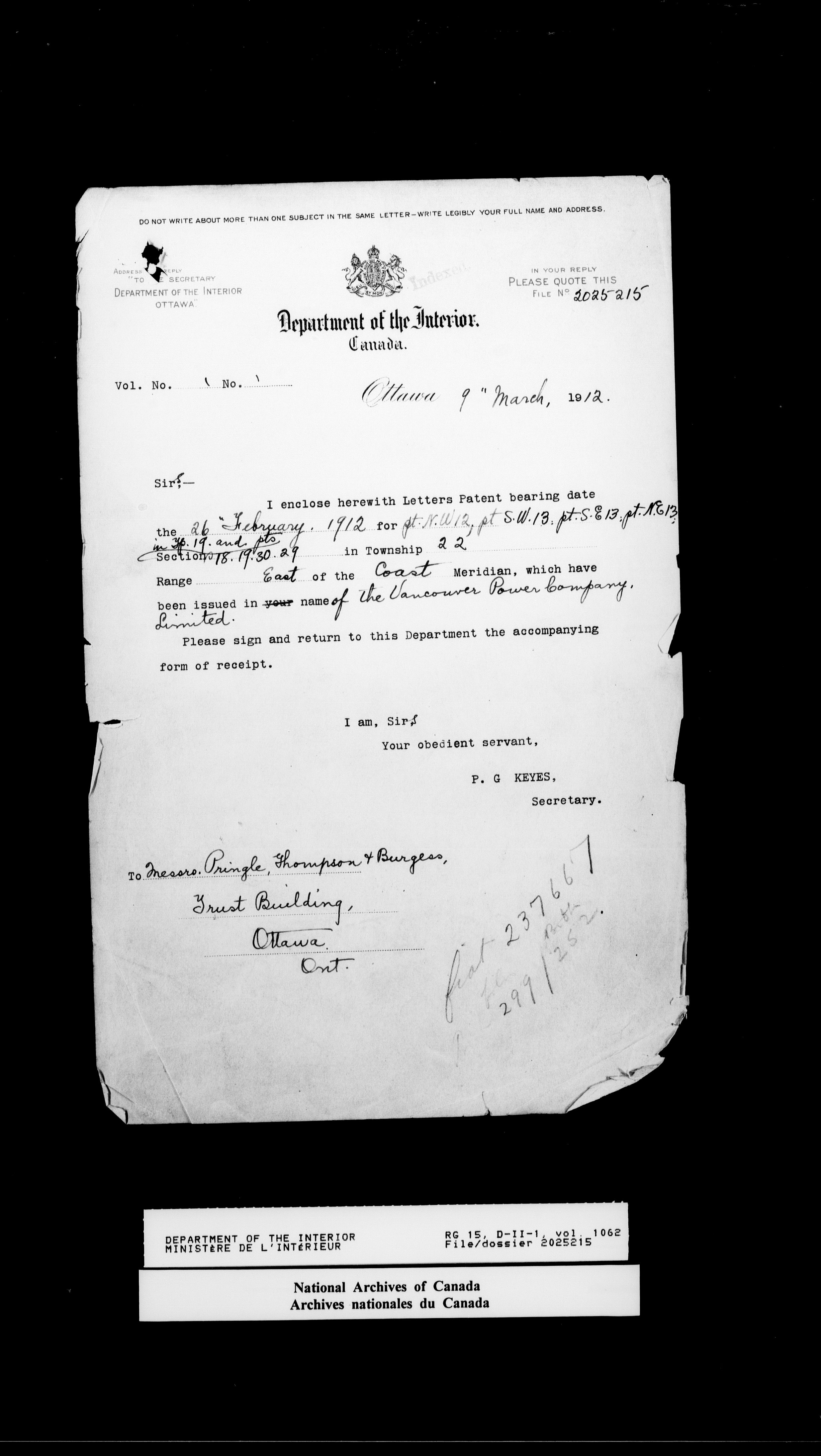 Central registry subject files created by the Dominion Lands Branch - 14631
