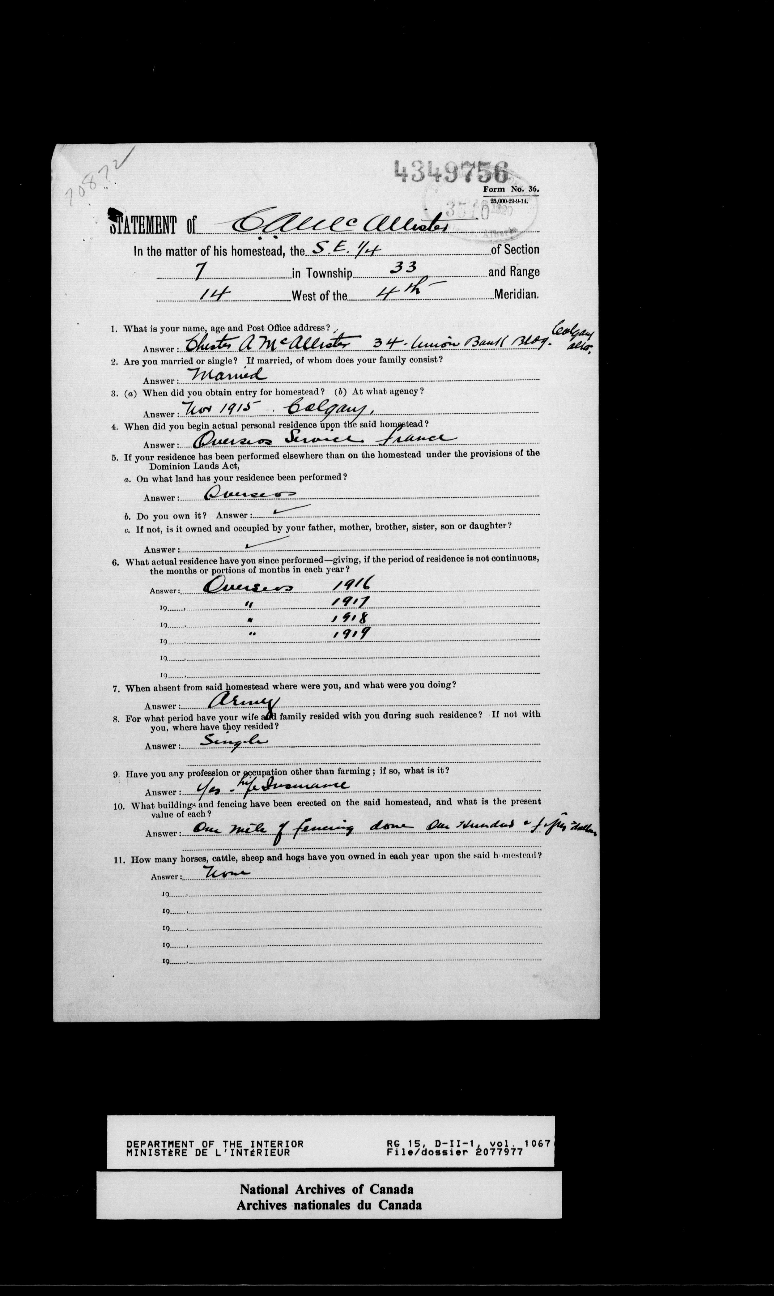 Central registry subject files created by the Dominion Lands Branch - 14634