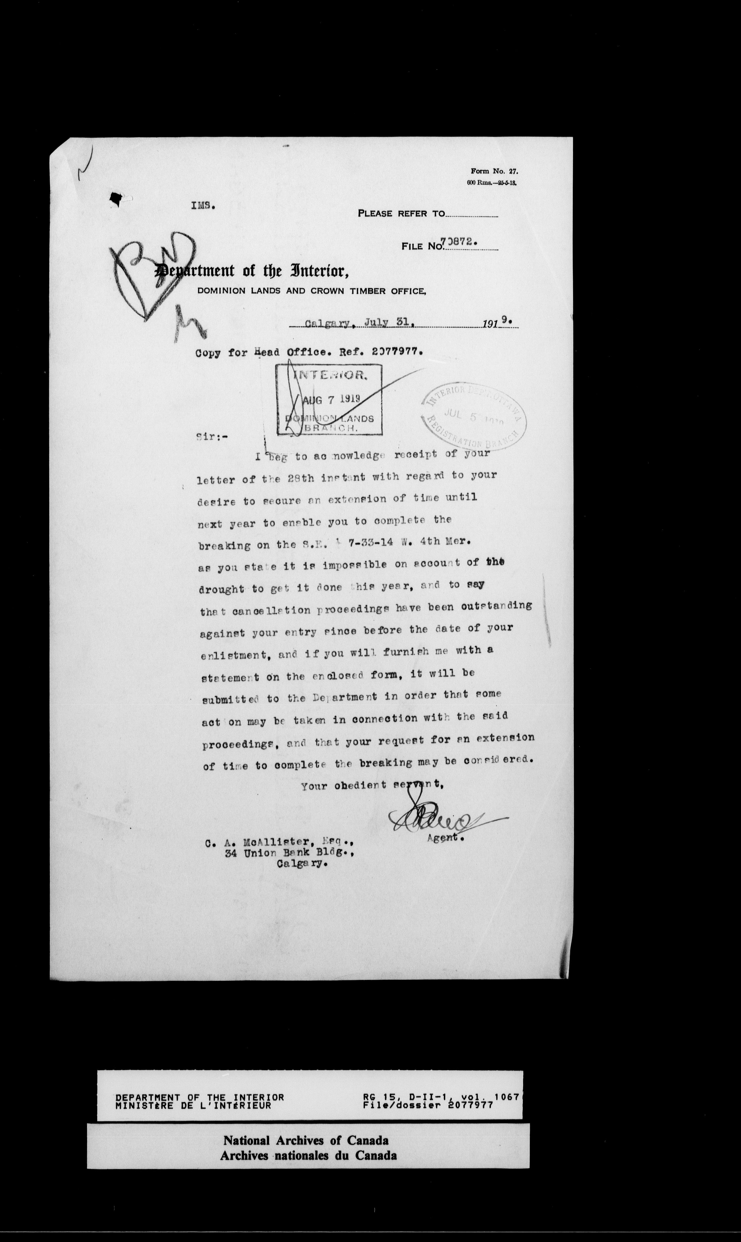 Central registry subject files created by the Dominion Lands Branch - 14634