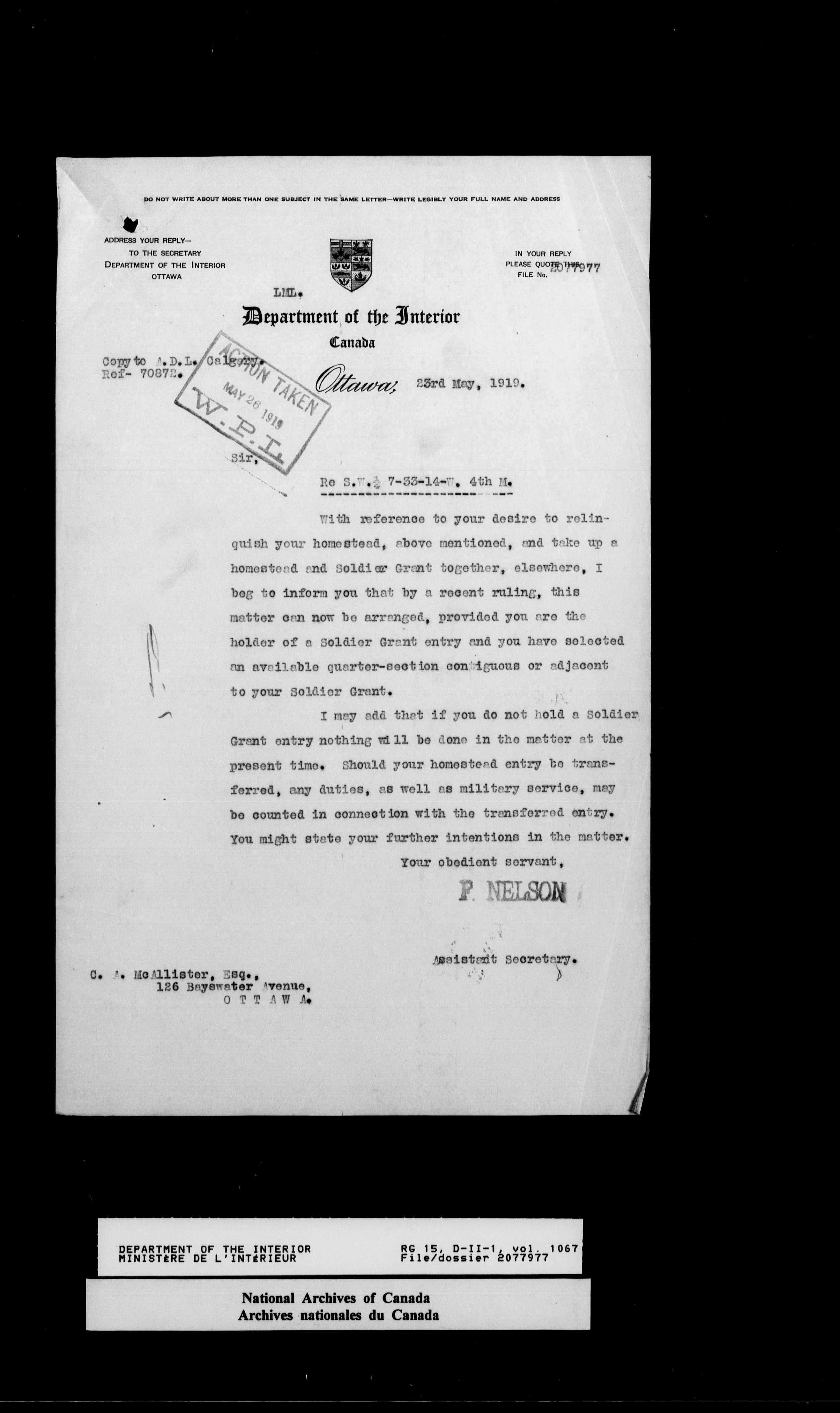 Central registry subject files created by the Dominion Lands Branch - 14634