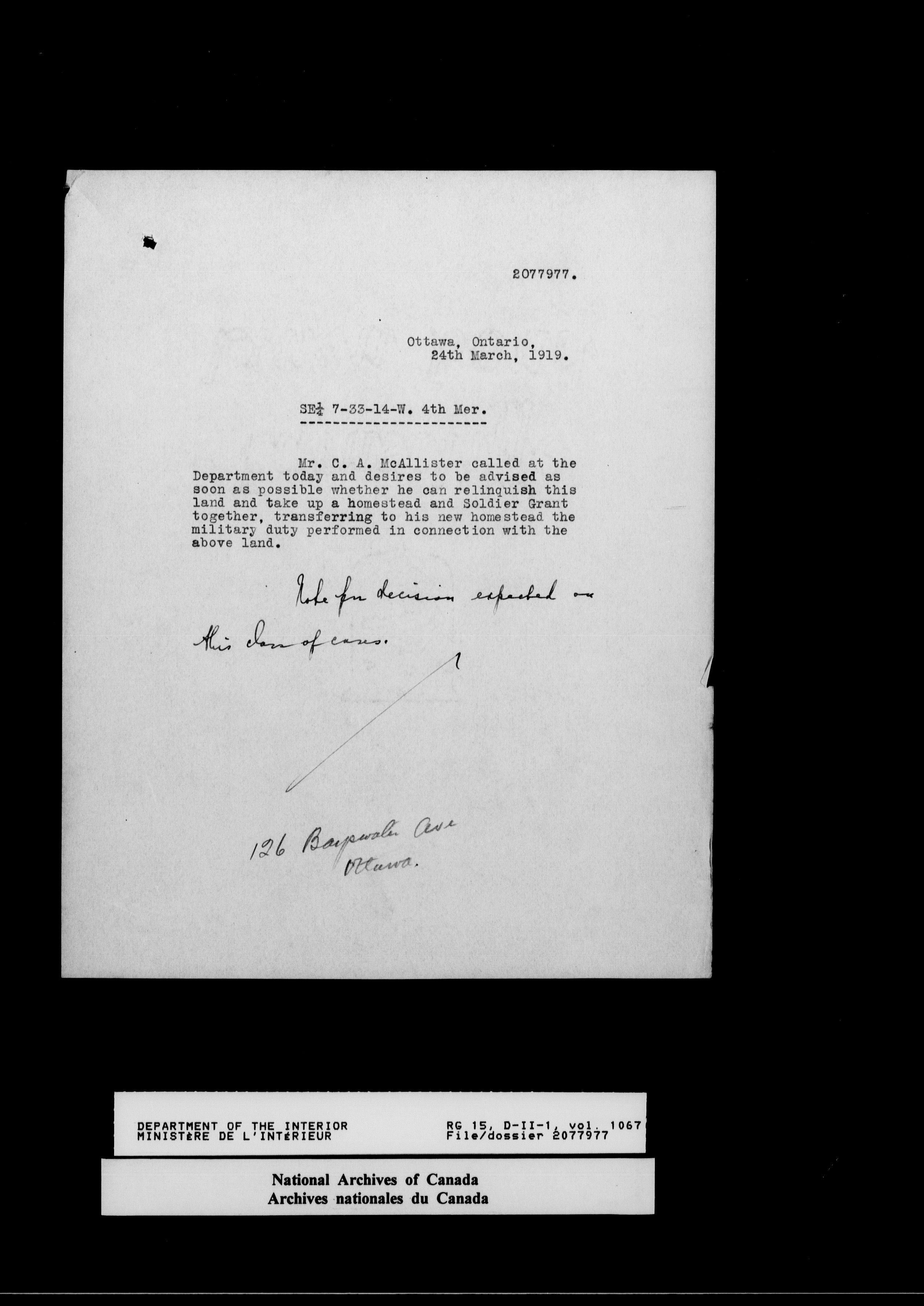 Central registry subject files created by the Dominion Lands Branch - 14634