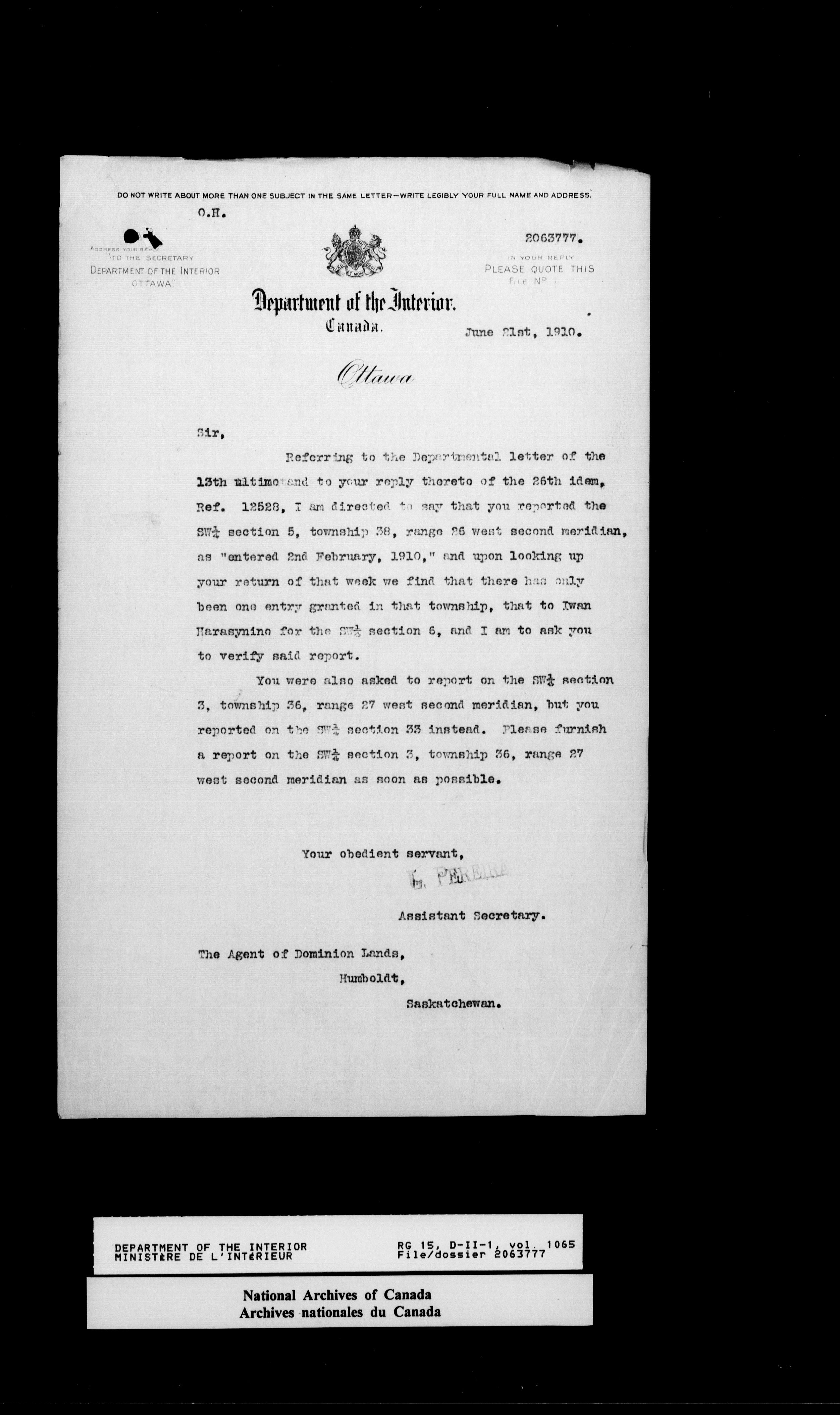 Central registry subject files created by the Dominion Lands Branch - 14634