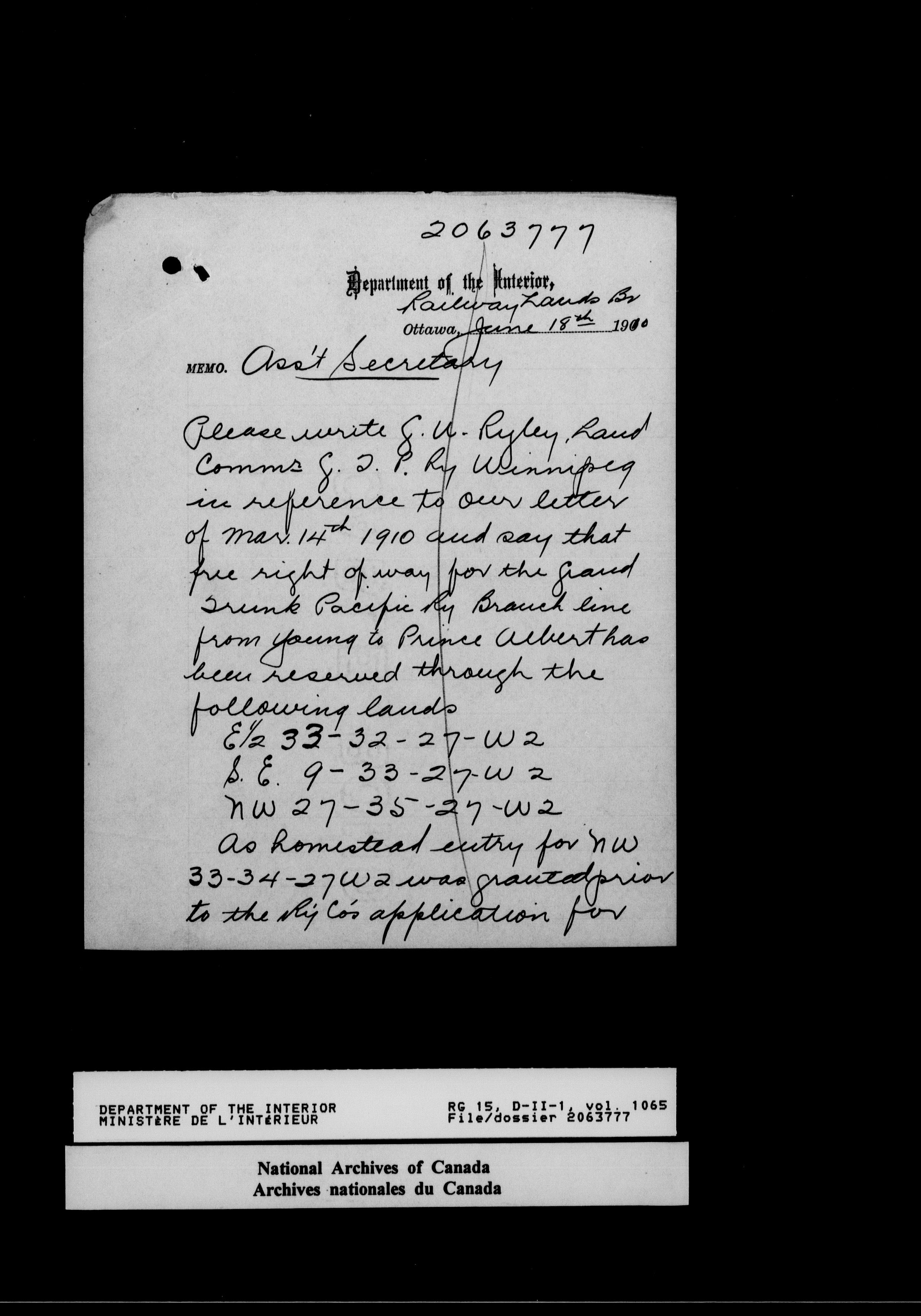 Central registry subject files created by the Dominion Lands Branch - 14634
