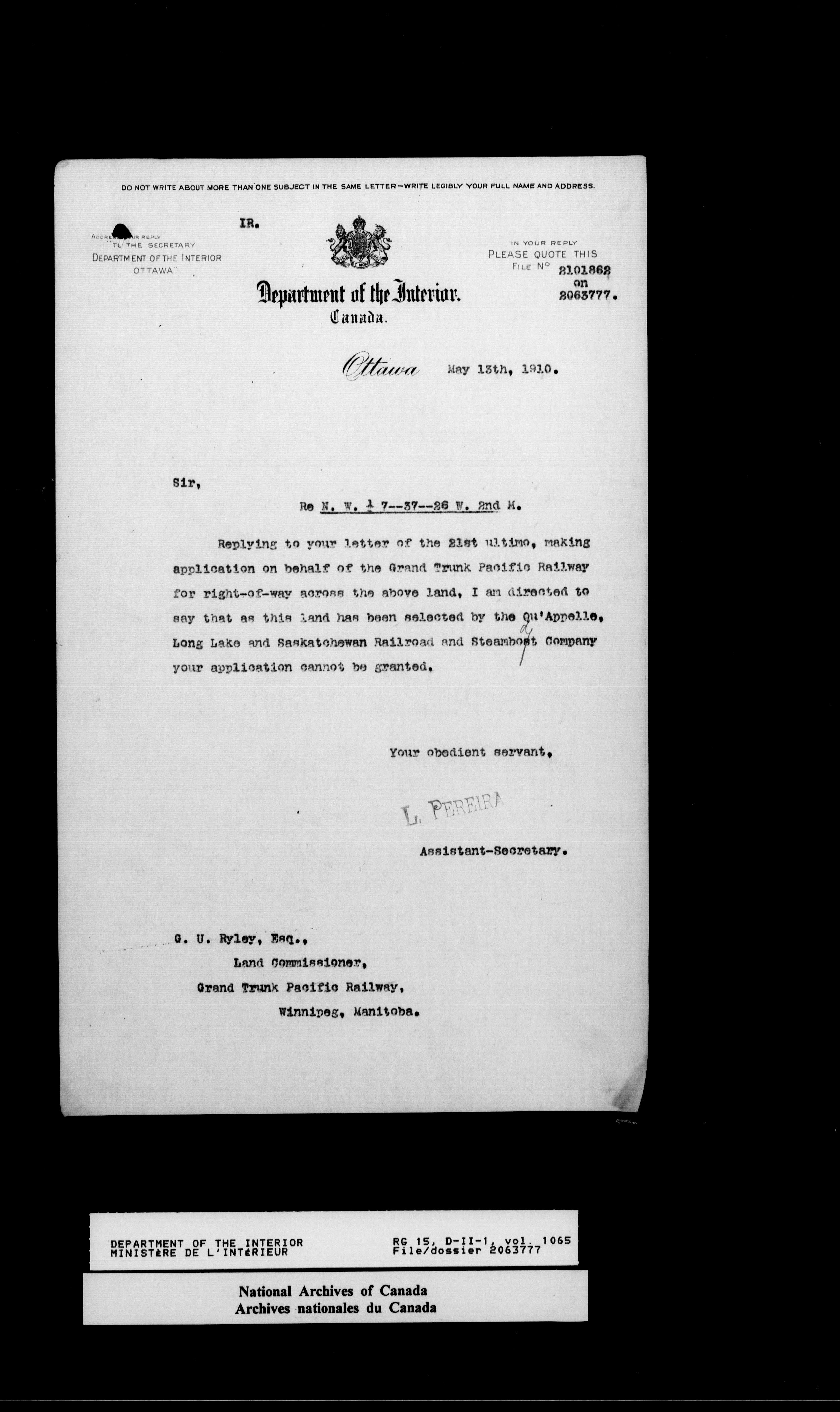 Central registry subject files created by the Dominion Lands Branch - 14634