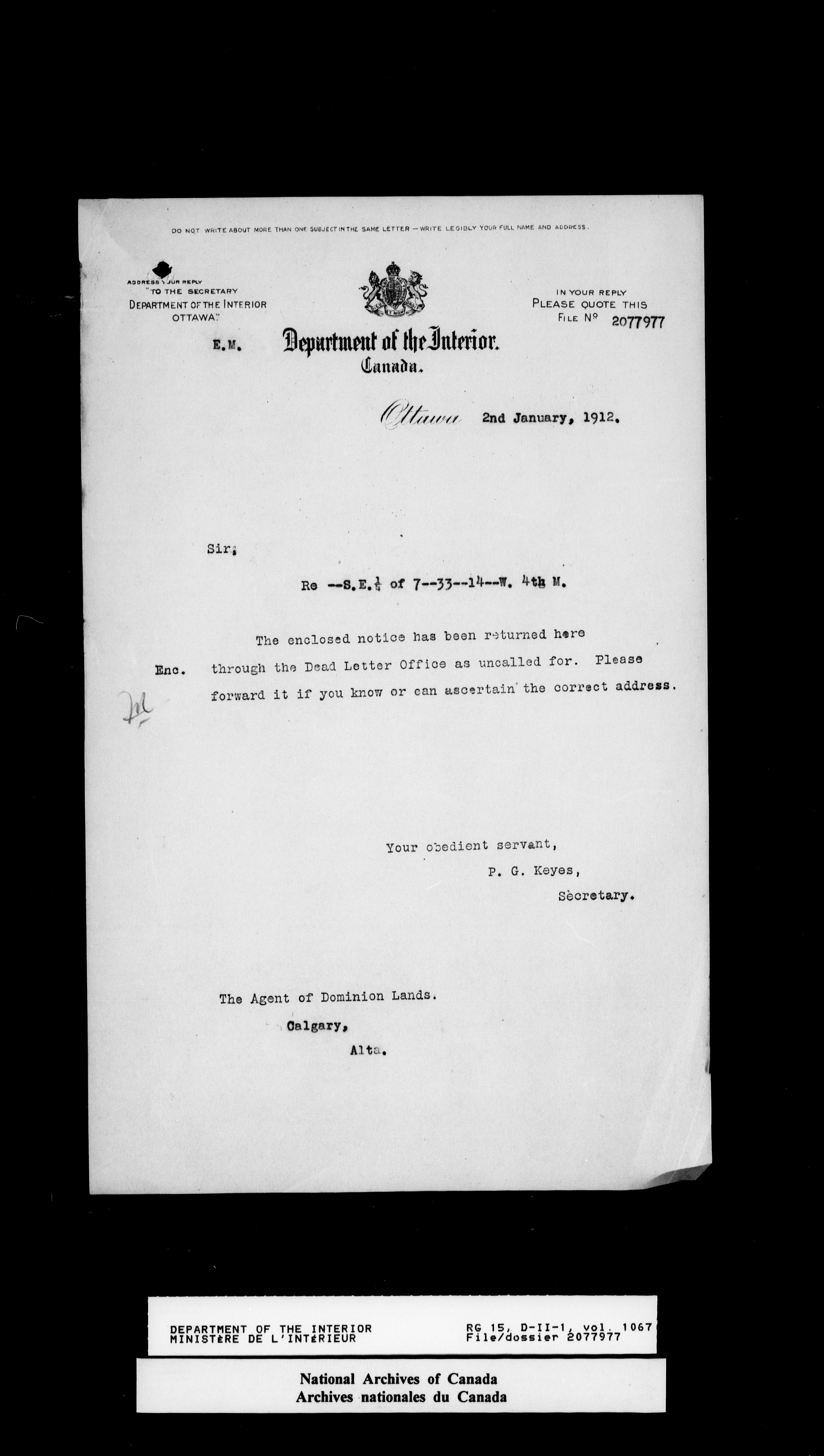 Central registry subject files created by the Dominion Lands Branch - 14635