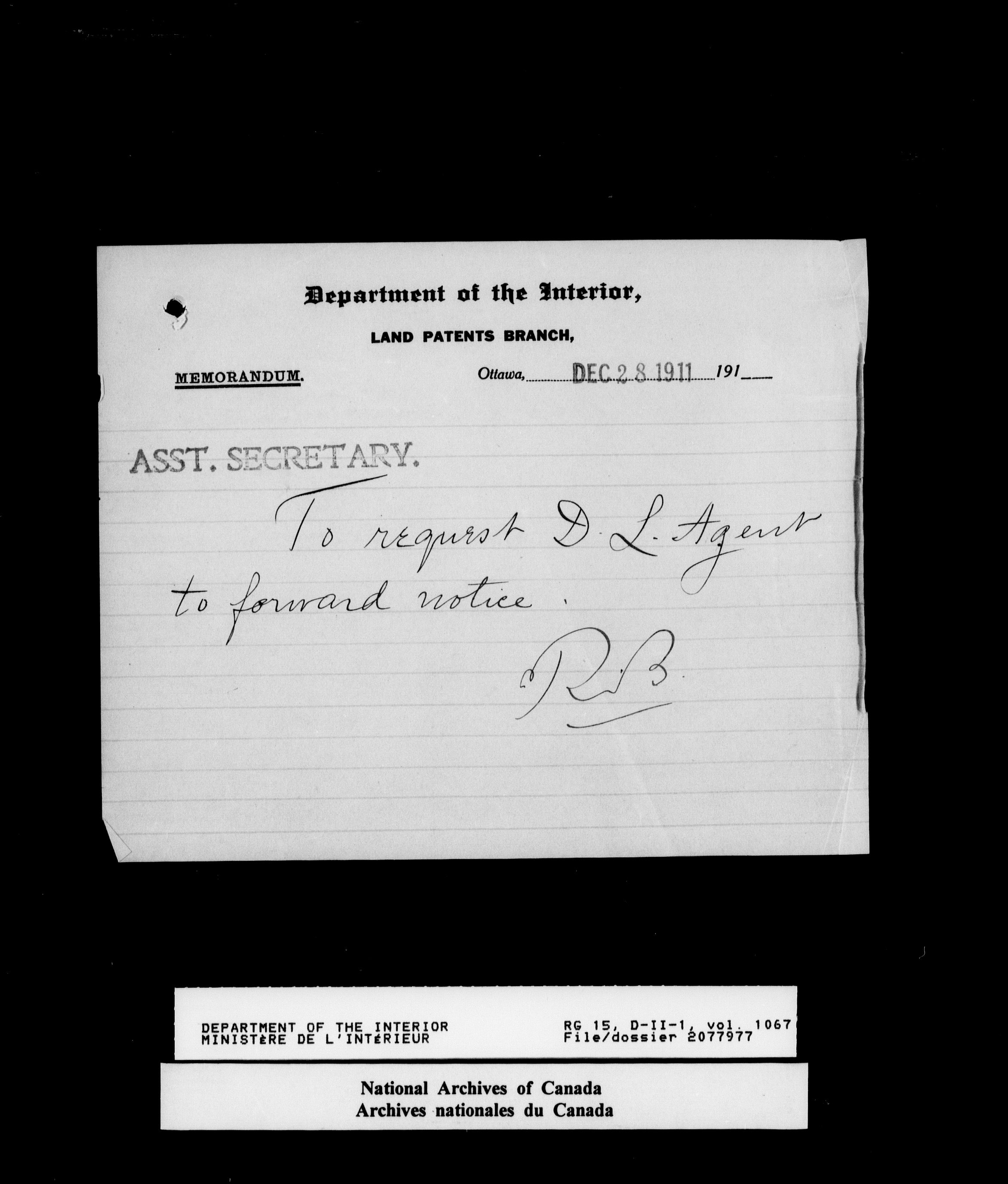 Central registry subject files created by the Dominion Lands Branch - 14635