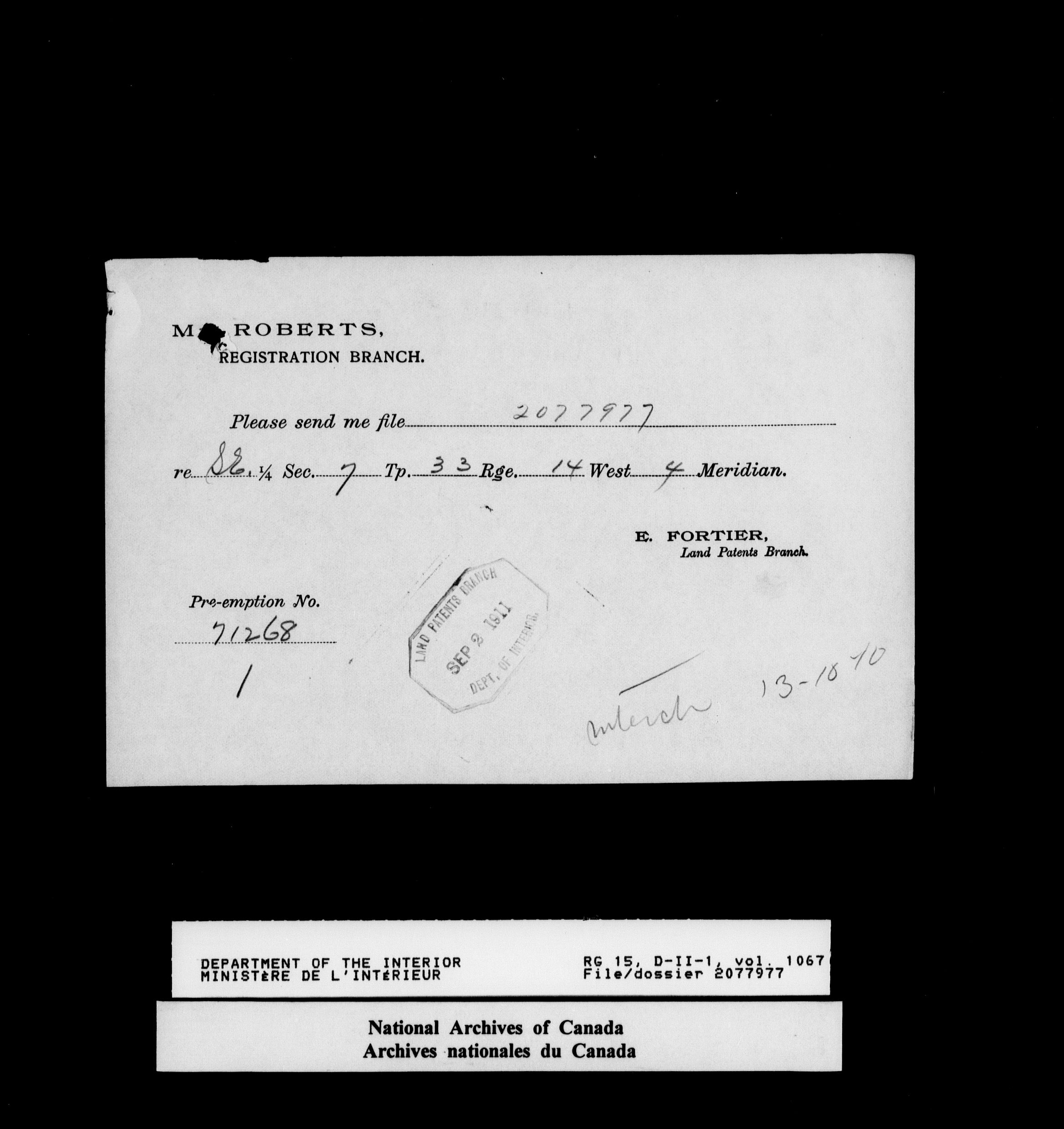 Central registry subject files created by the Dominion Lands Branch - 14635