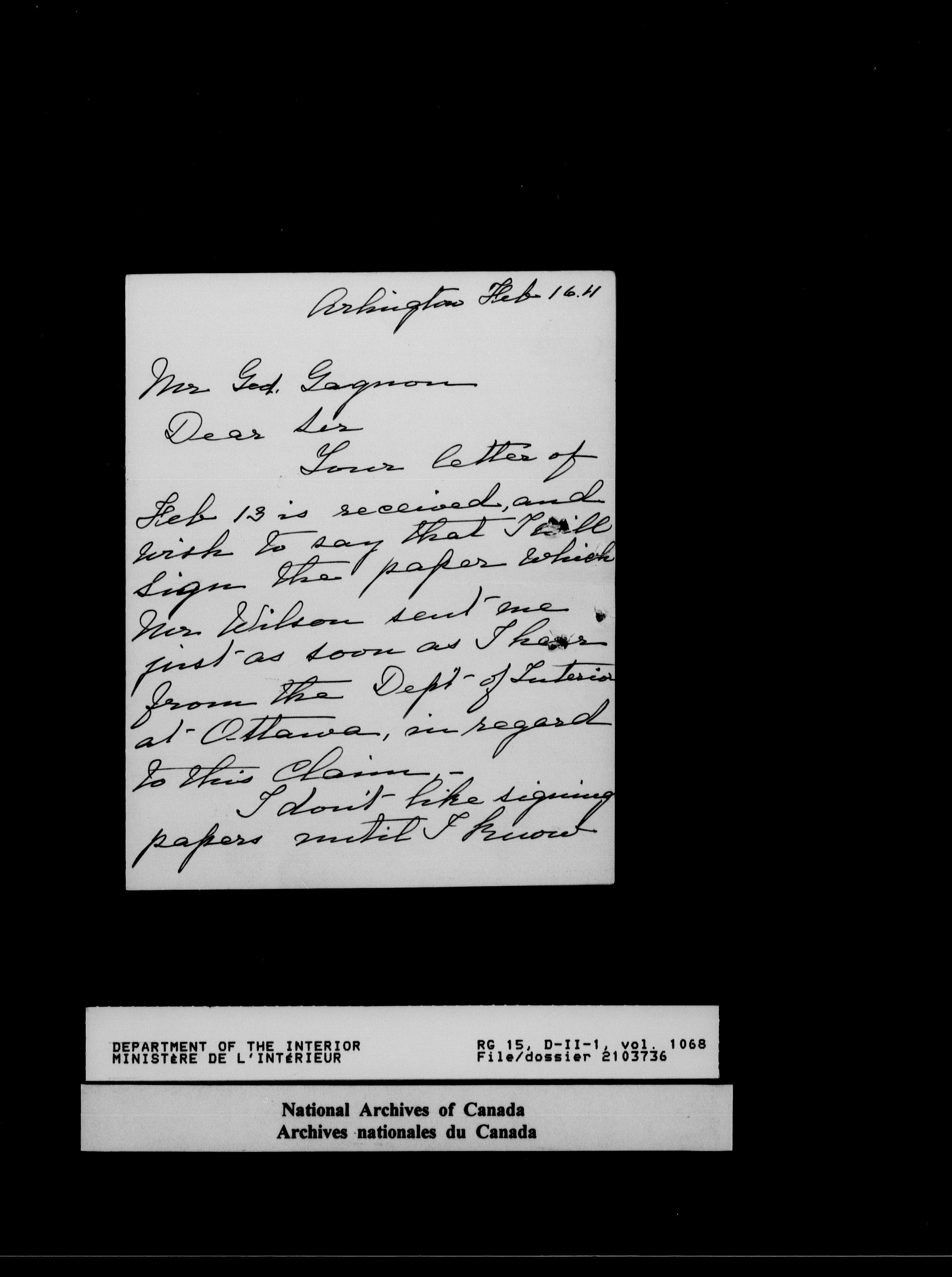 Central registry subject files created by the Dominion Lands Branch - 14636