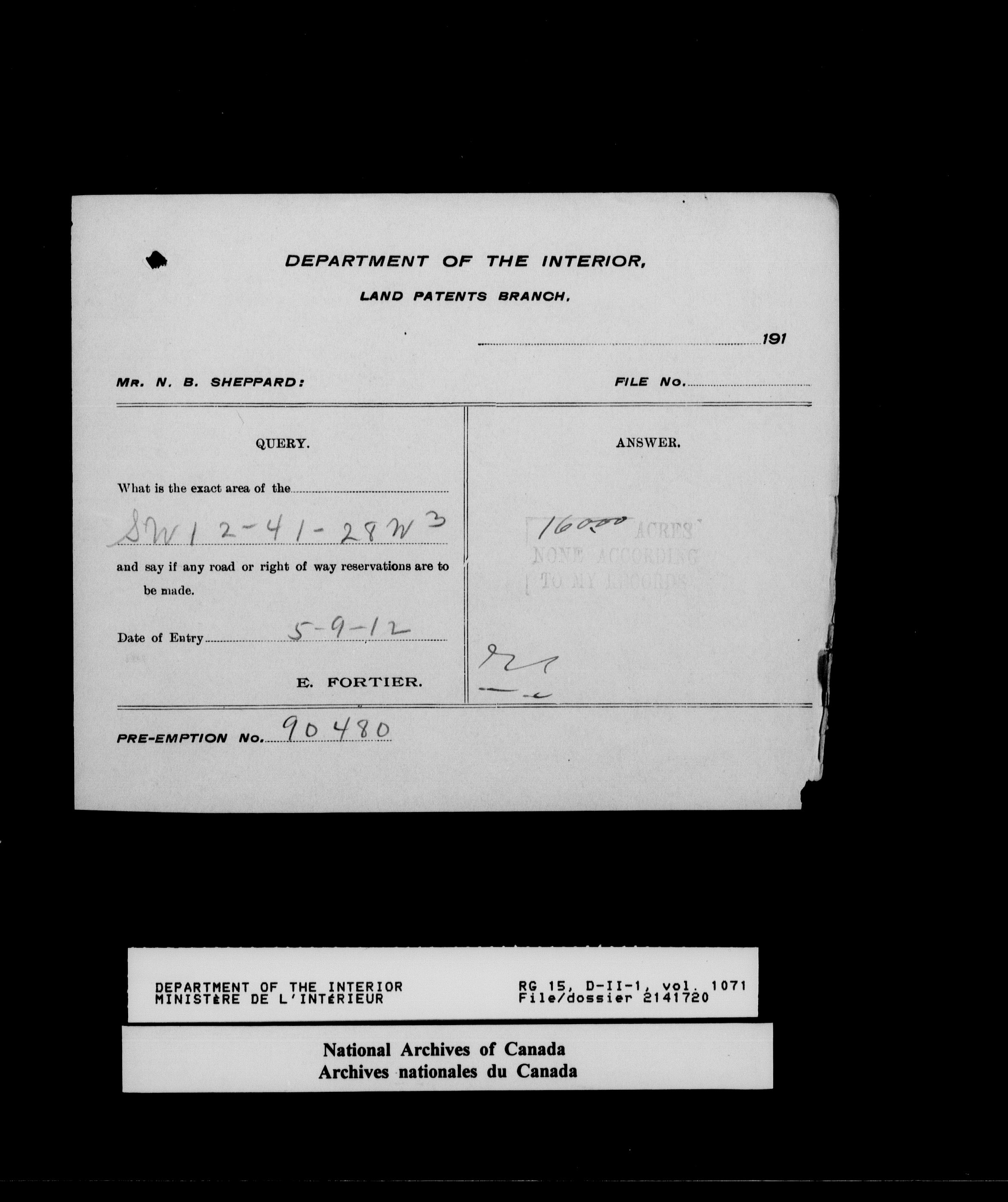 Central registry subject files created by the Dominion Lands Branch - 14637