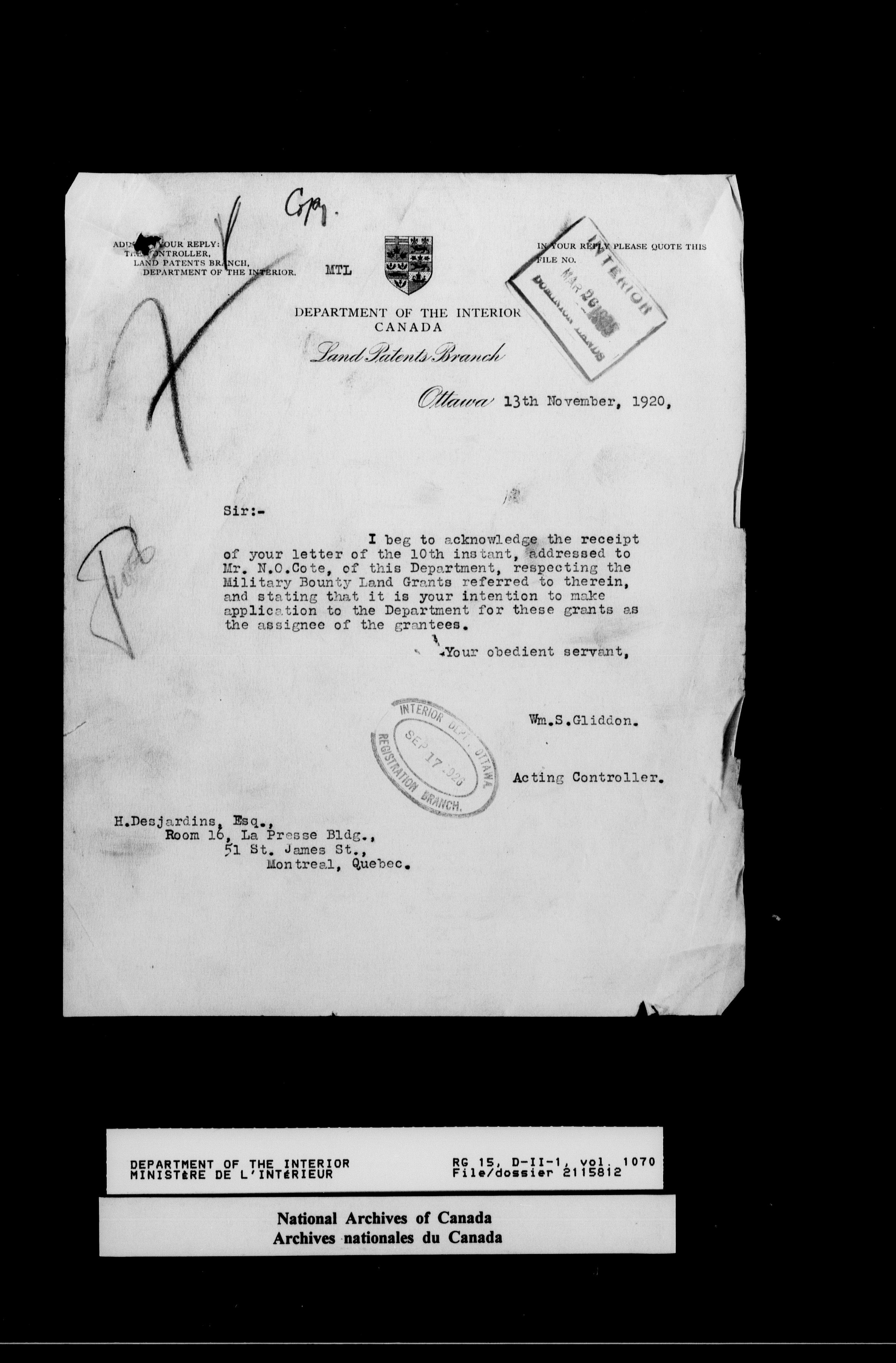 Central registry subject files created by the Dominion Lands Branch - 14637