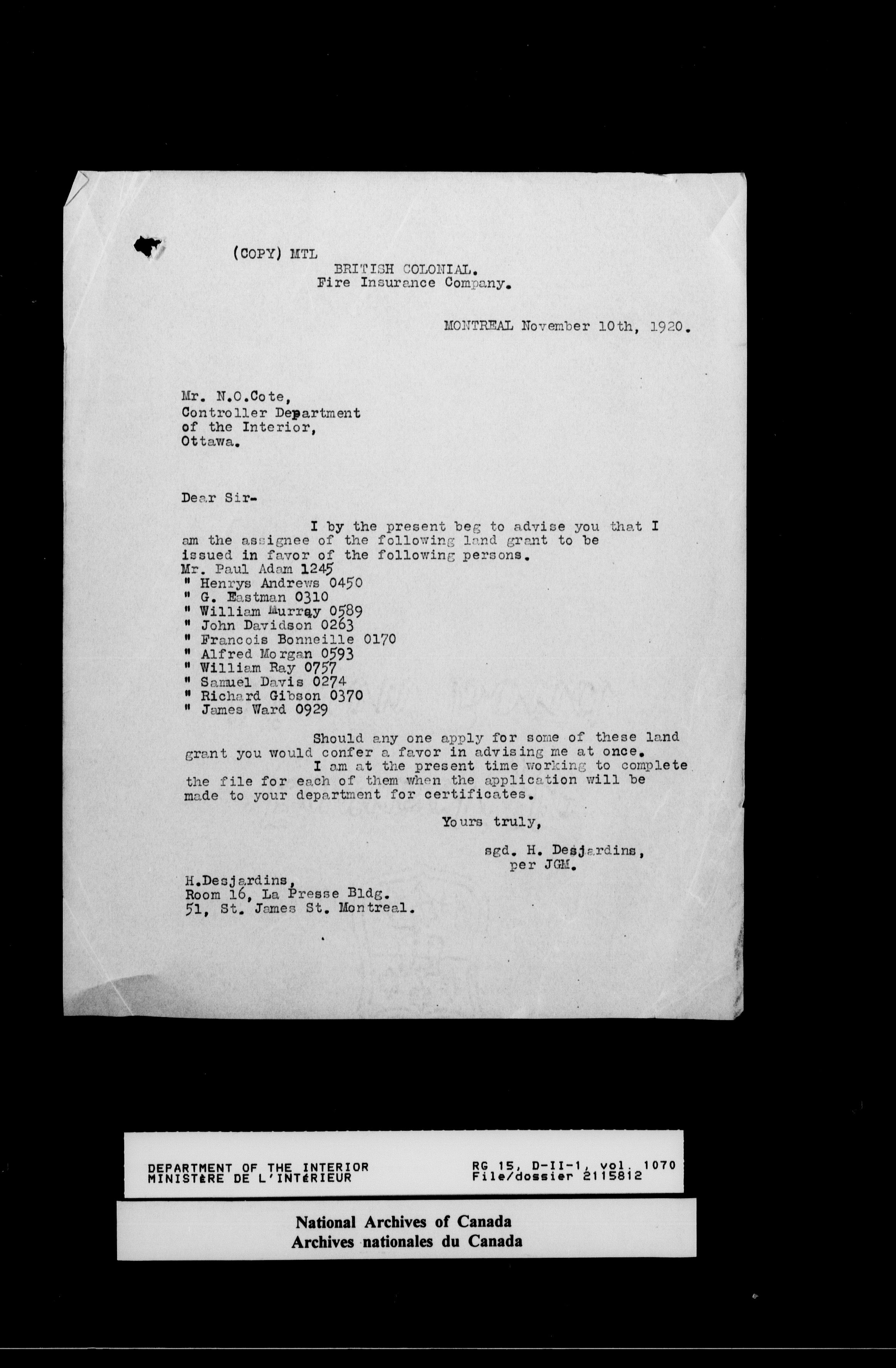Central registry subject files created by the Dominion Lands Branch - 14637