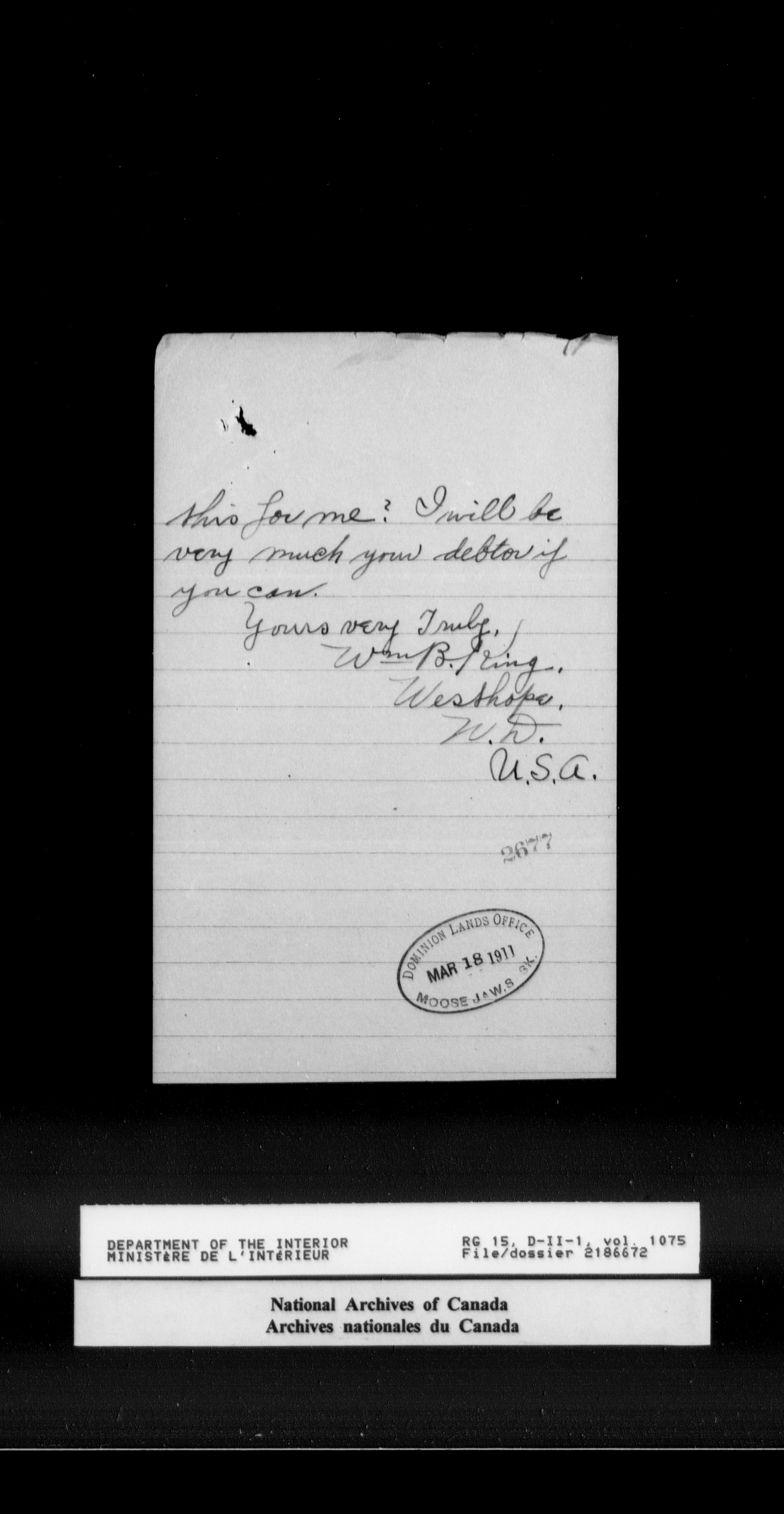 Central registry subject files created by the Dominion Lands Branch - 14641