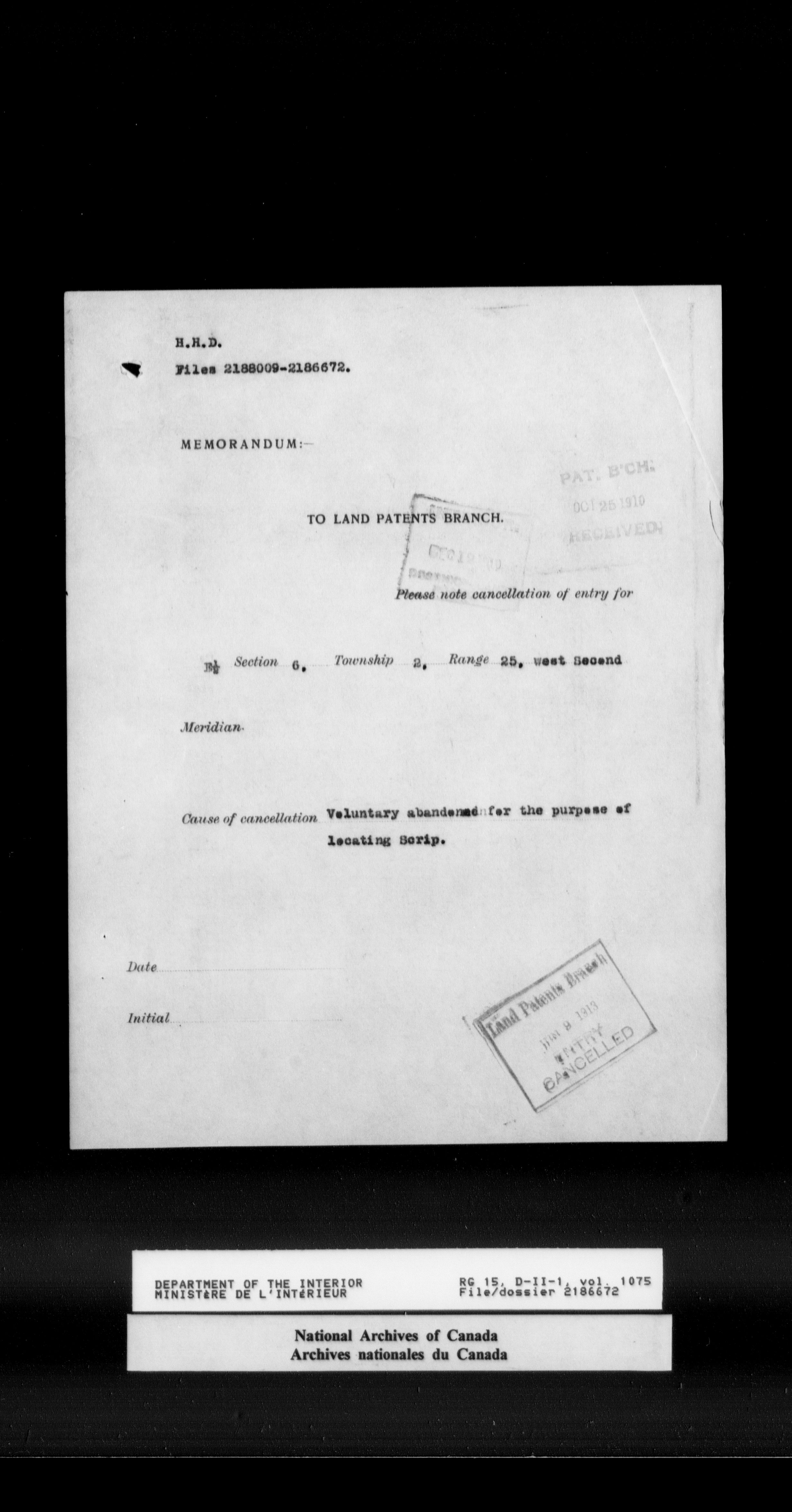 Central registry subject files created by the Dominion Lands Branch - 14641