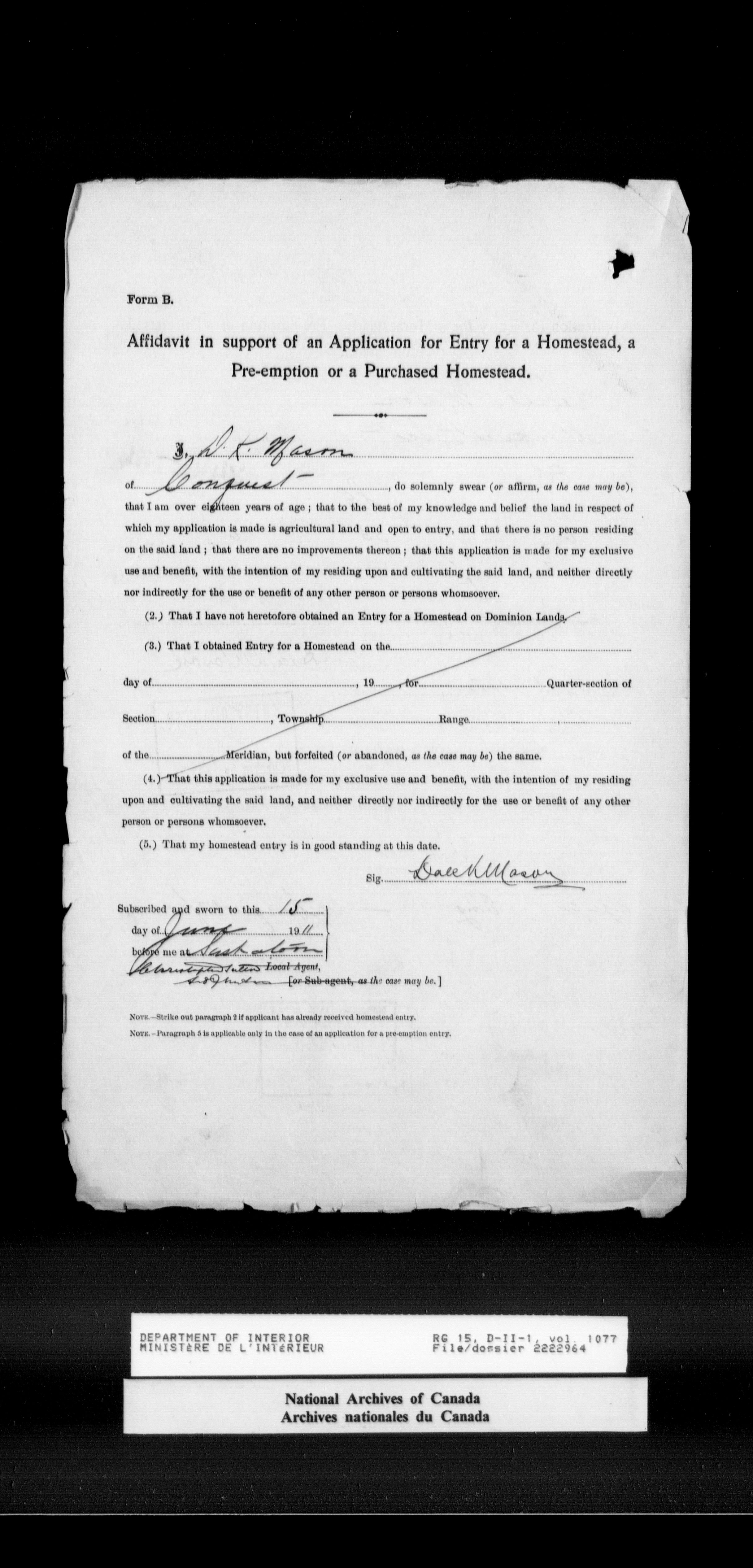 Central registry subject files created by the Dominion Lands Branch - 14642