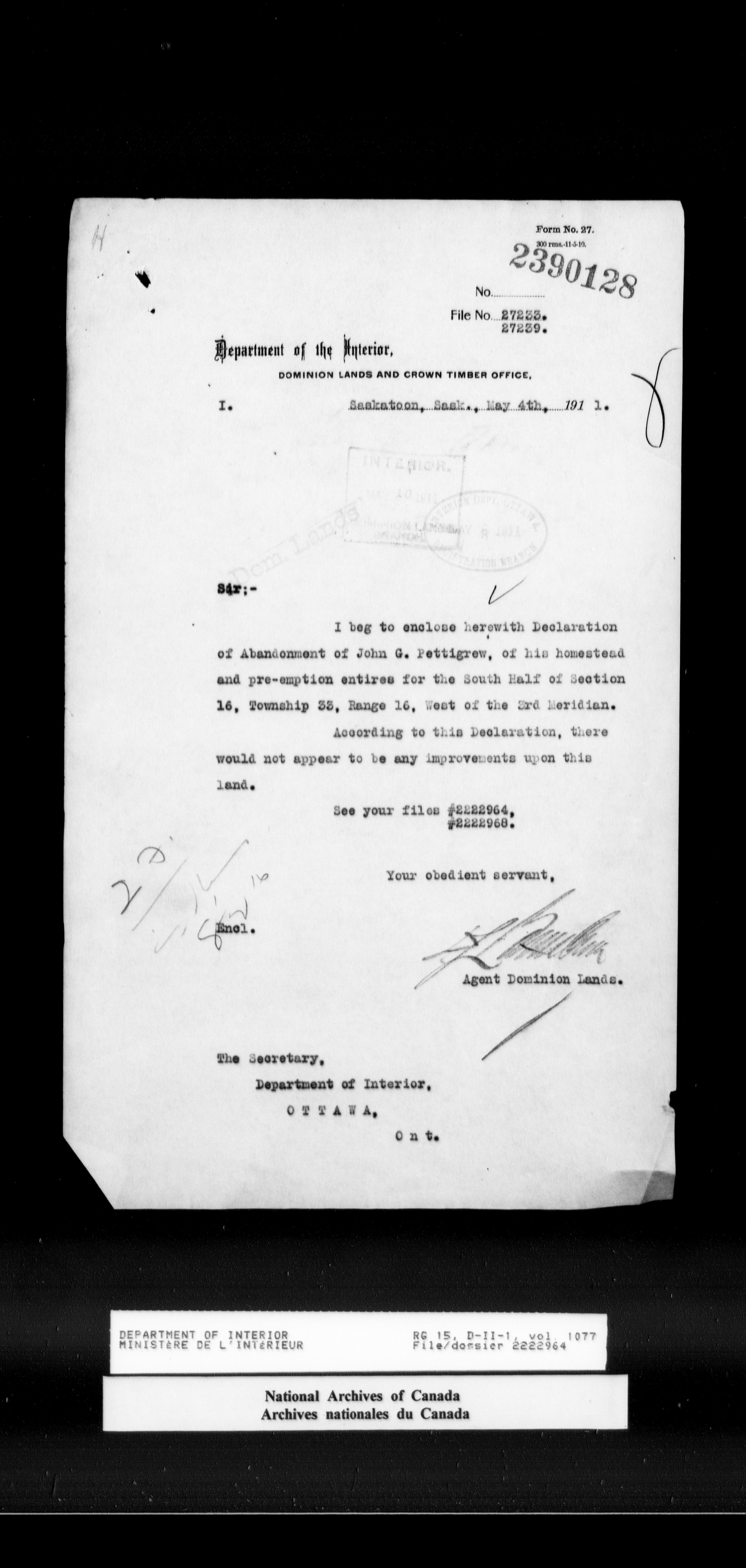 Central registry subject files created by the Dominion Lands Branch - 14642
