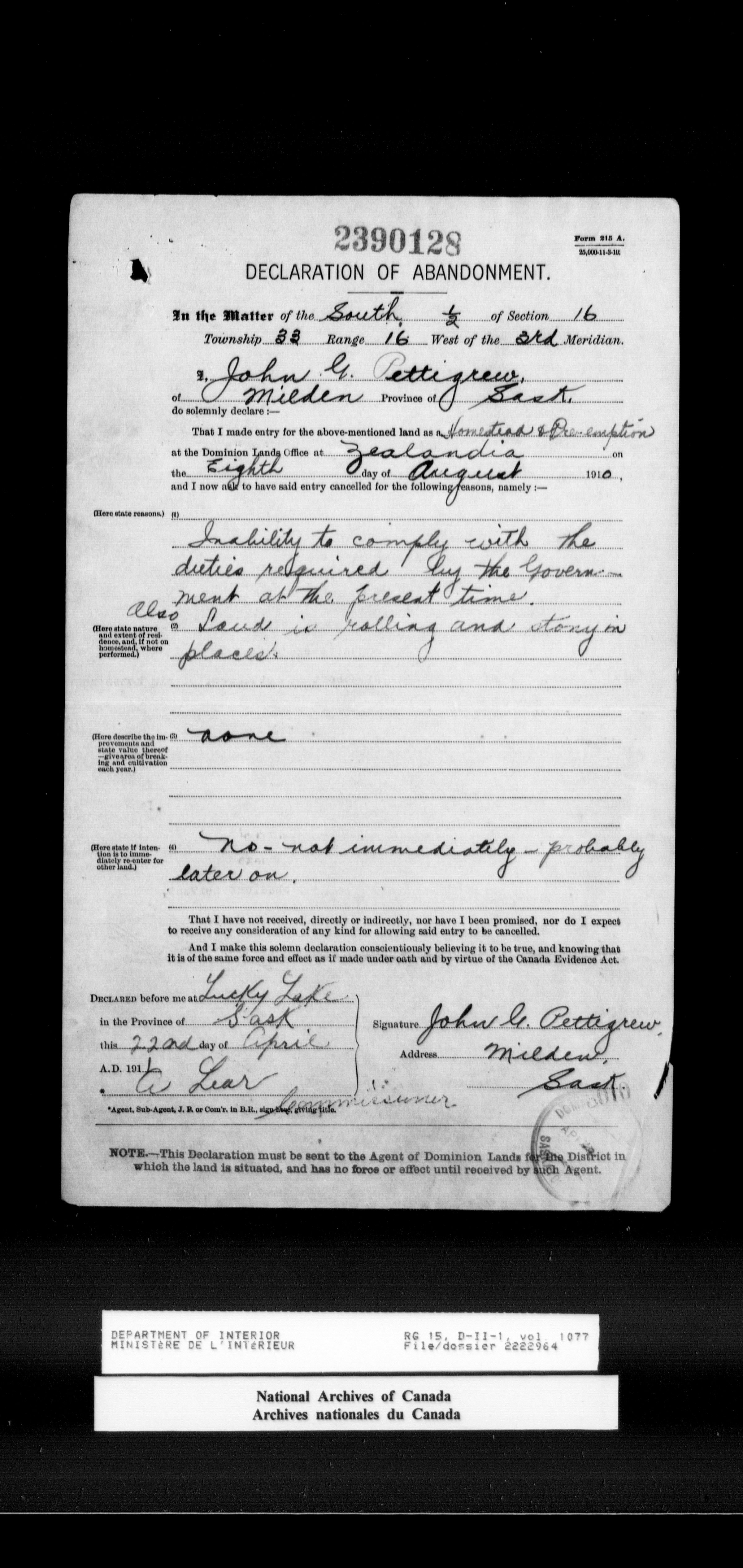 Central registry subject files created by the Dominion Lands Branch - 14642