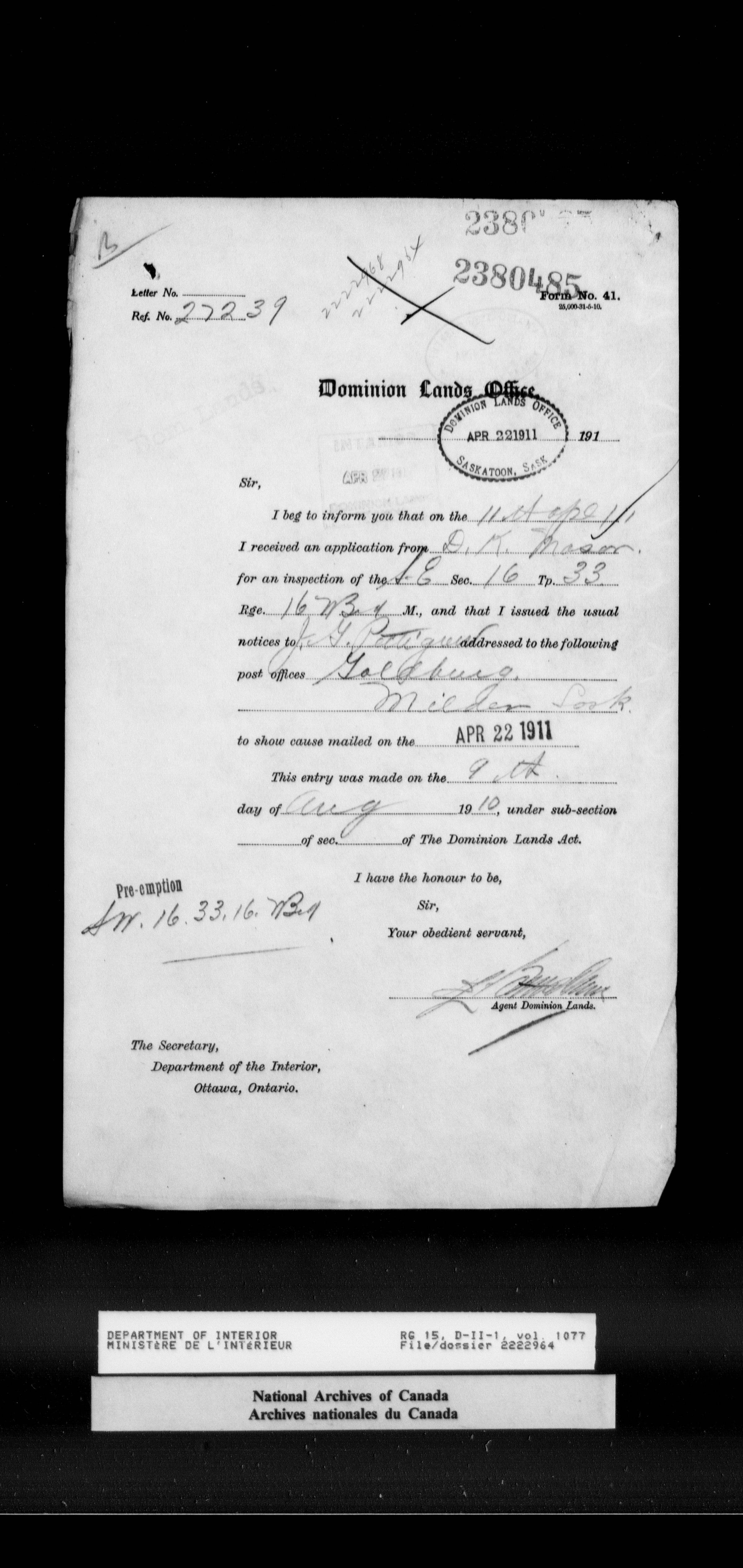 Central registry subject files created by the Dominion Lands Branch - 14642