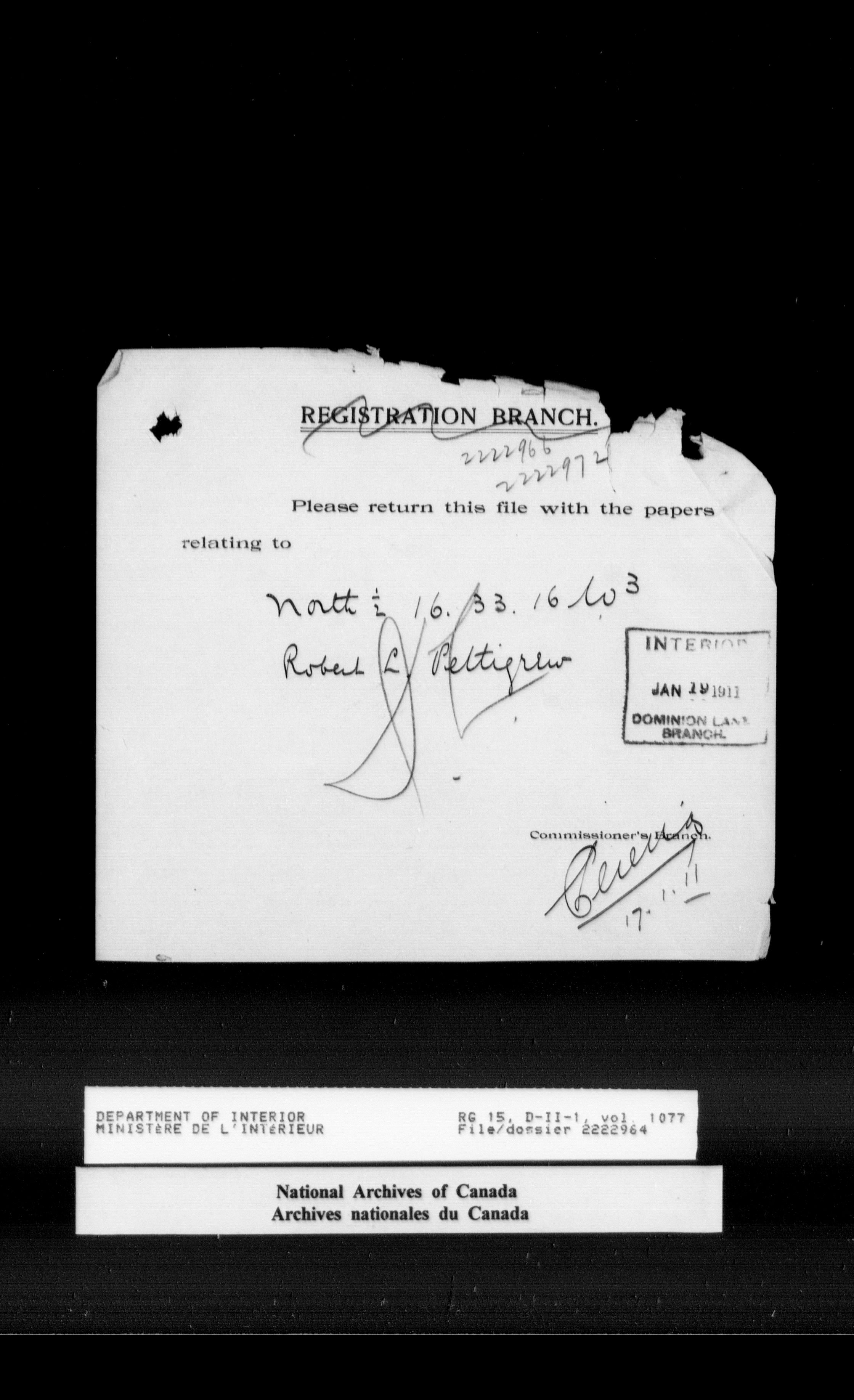 Central registry subject files created by the Dominion Lands Branch - 14642