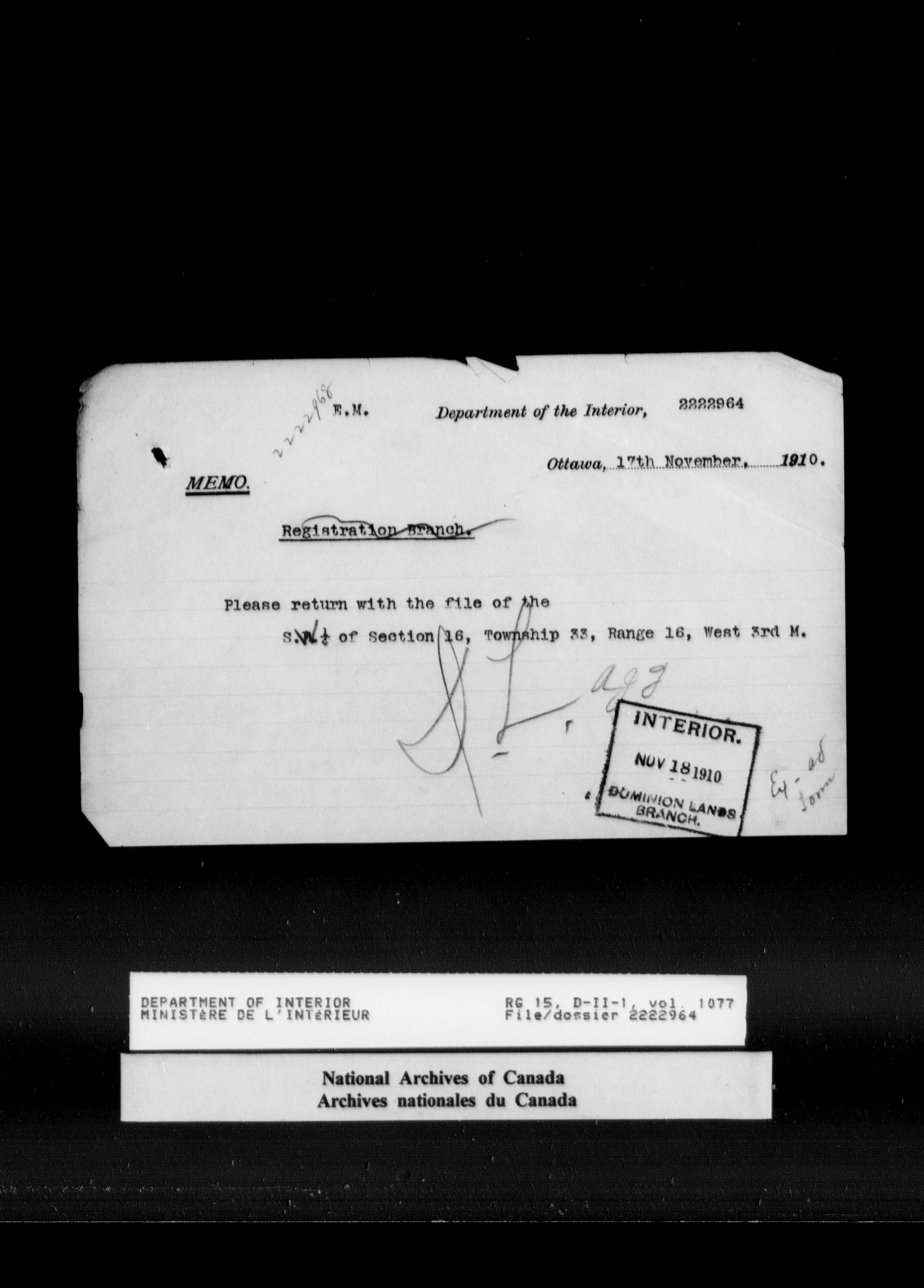Central registry subject files created by the Dominion Lands Branch - 14642