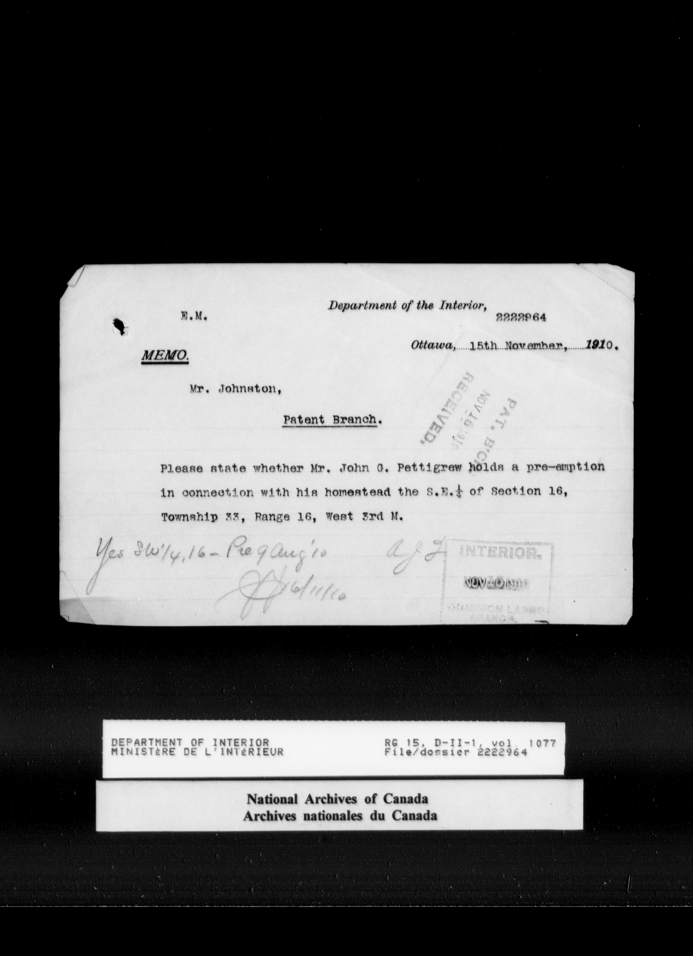 Central registry subject files created by the Dominion Lands Branch - 14642