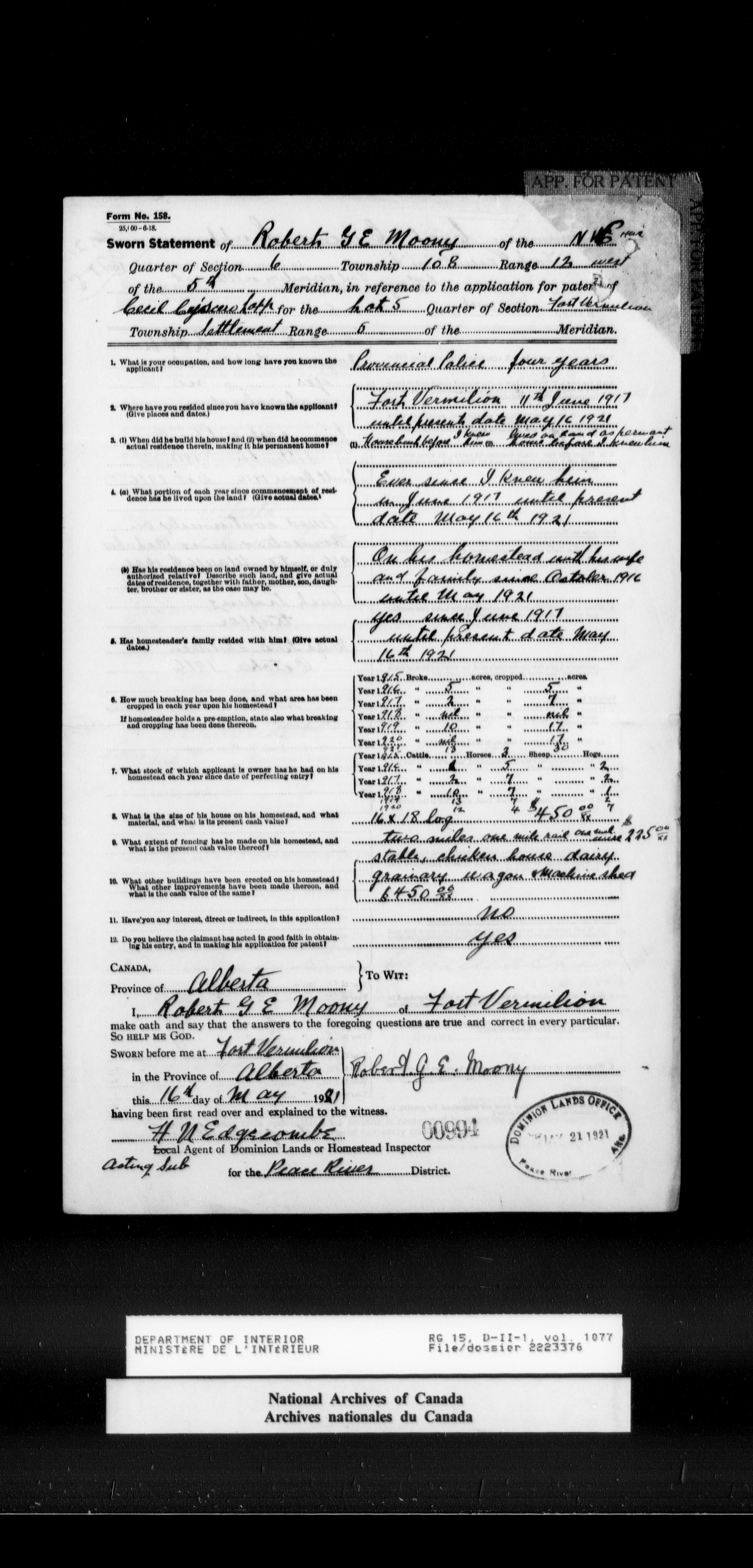 Central registry subject files created by the Dominion Lands Branch - 14642
