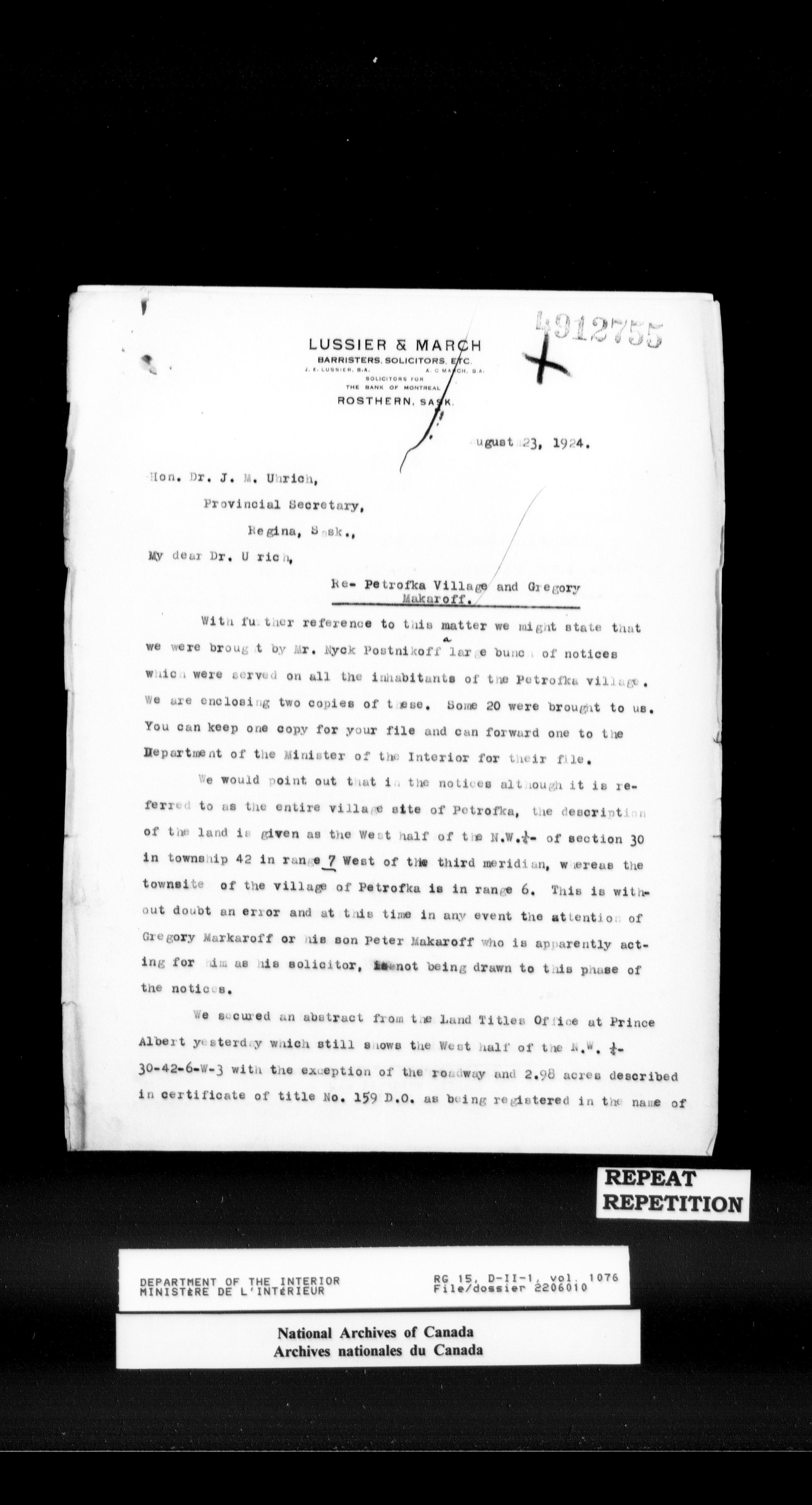 Central registry subject files created by the Dominion Lands Branch - 14642
