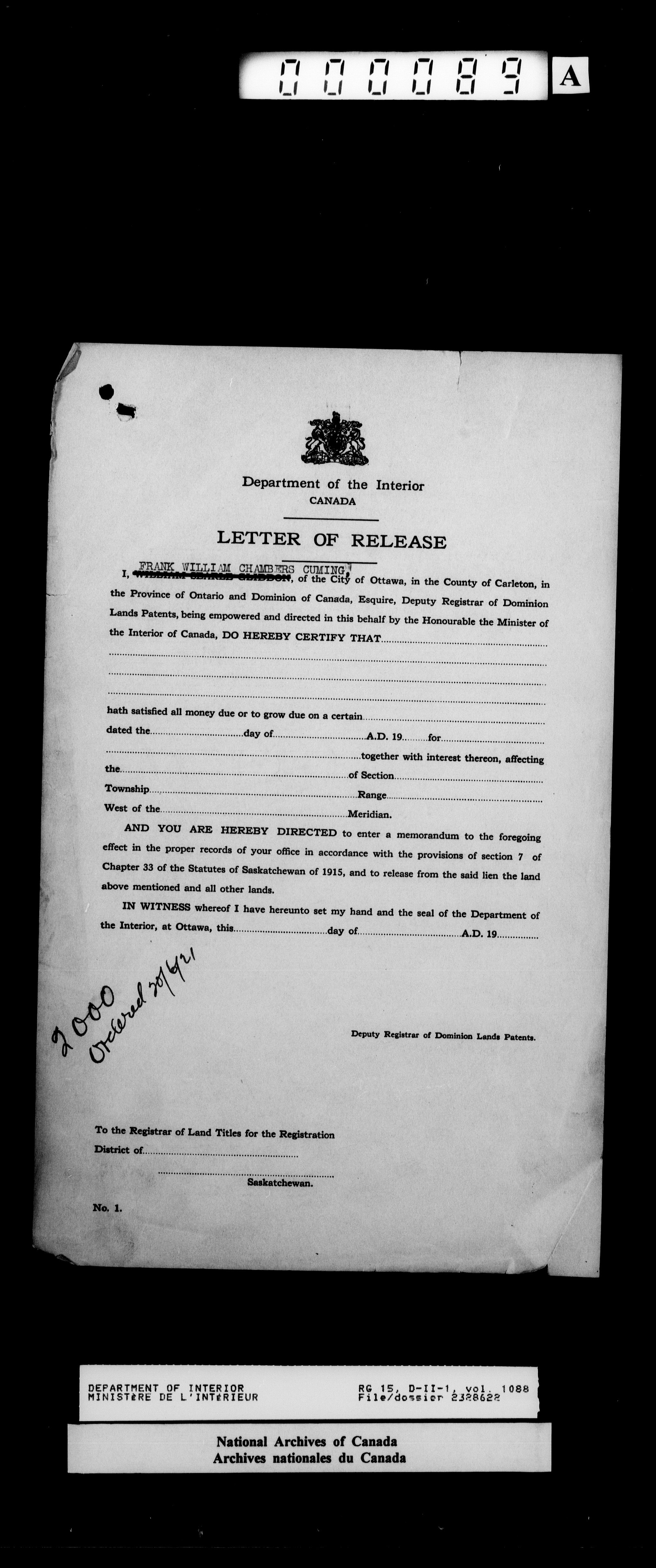 Central registry subject files created by the Dominion Lands Branch - 14653