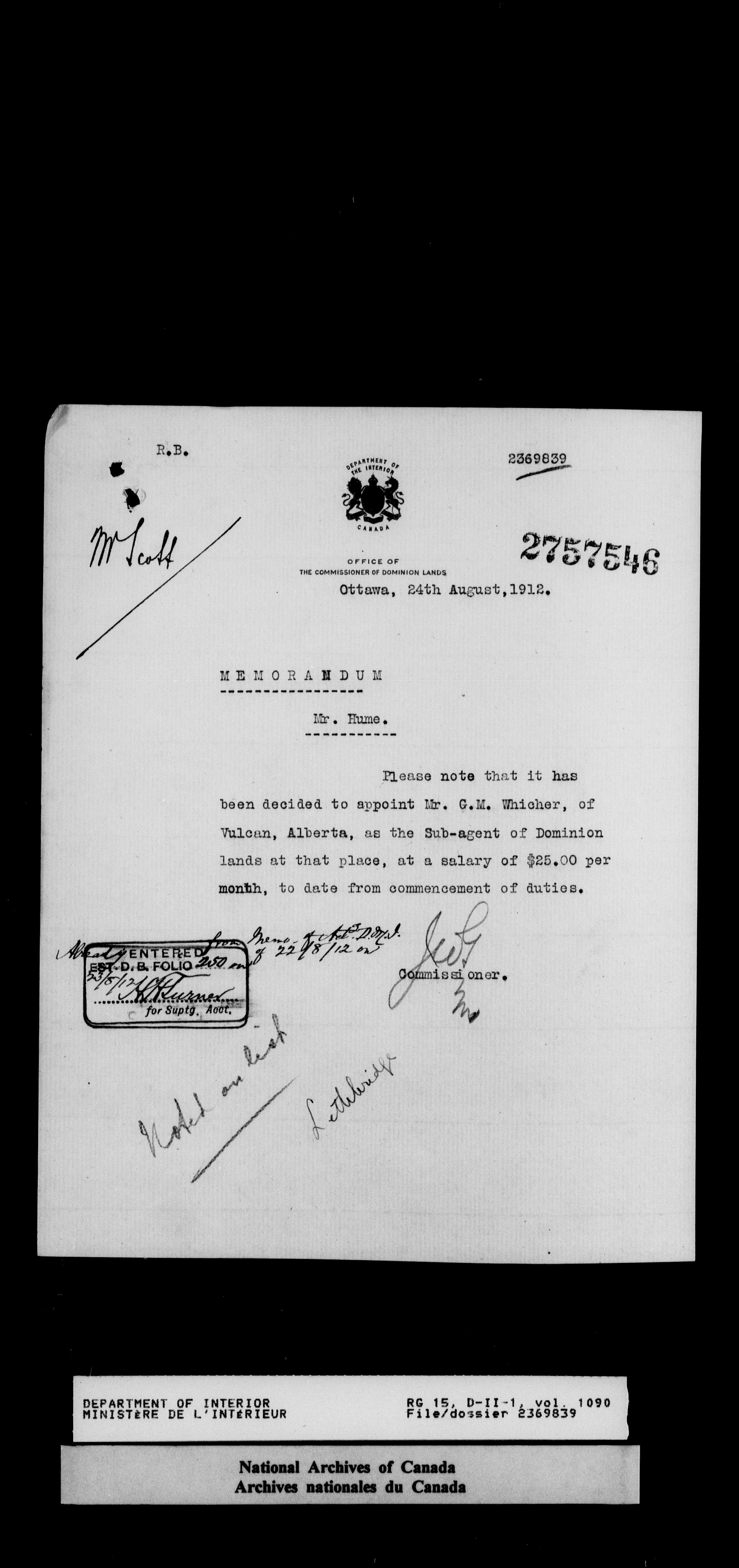 Central registry subject files created by the Dominion Lands Branch - 14654
