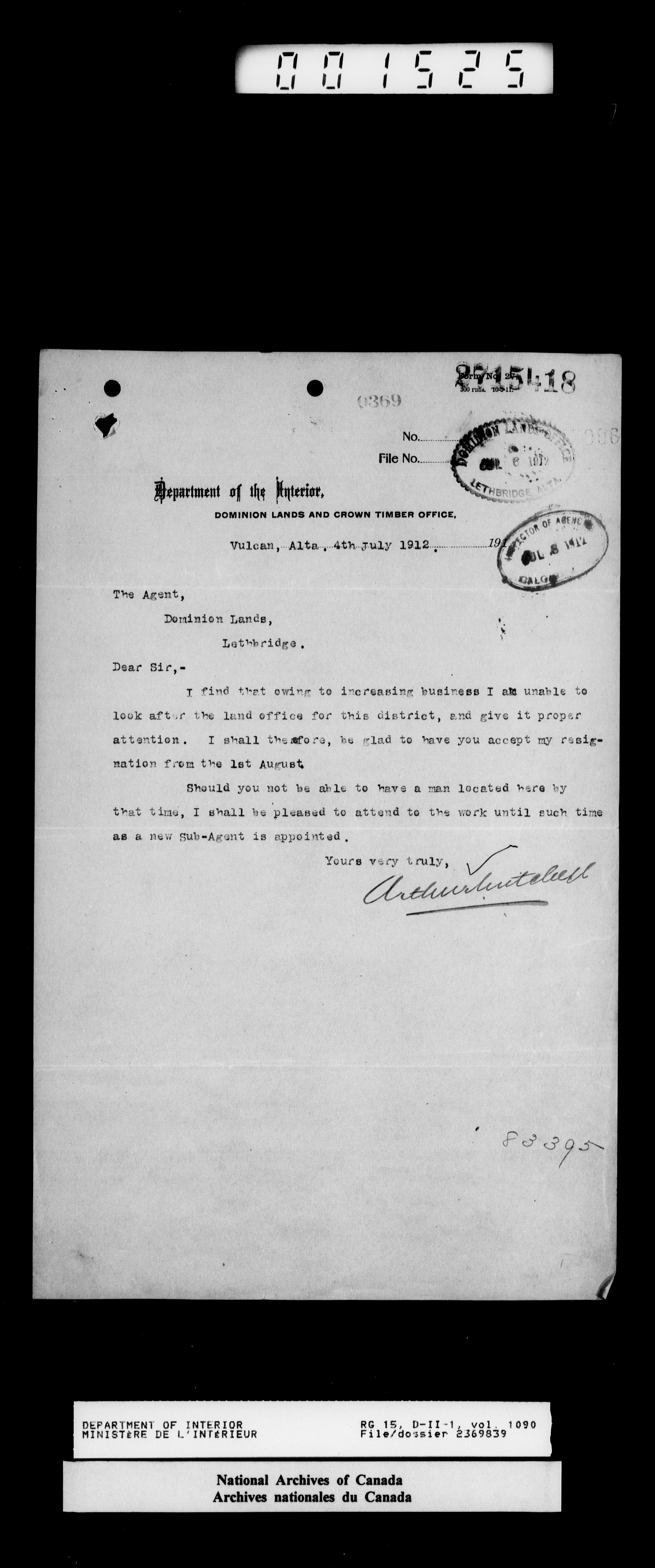 Central registry subject files created by the Dominion Lands Branch - 14654