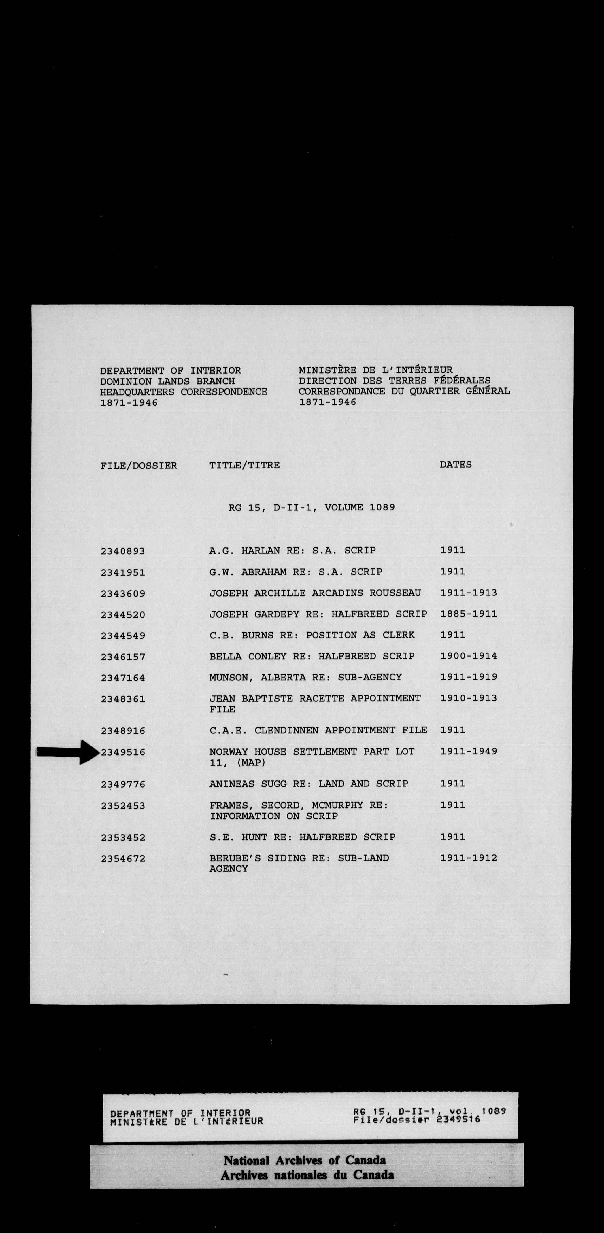 Central registry subject files created by the Dominion Lands Branch - 14654