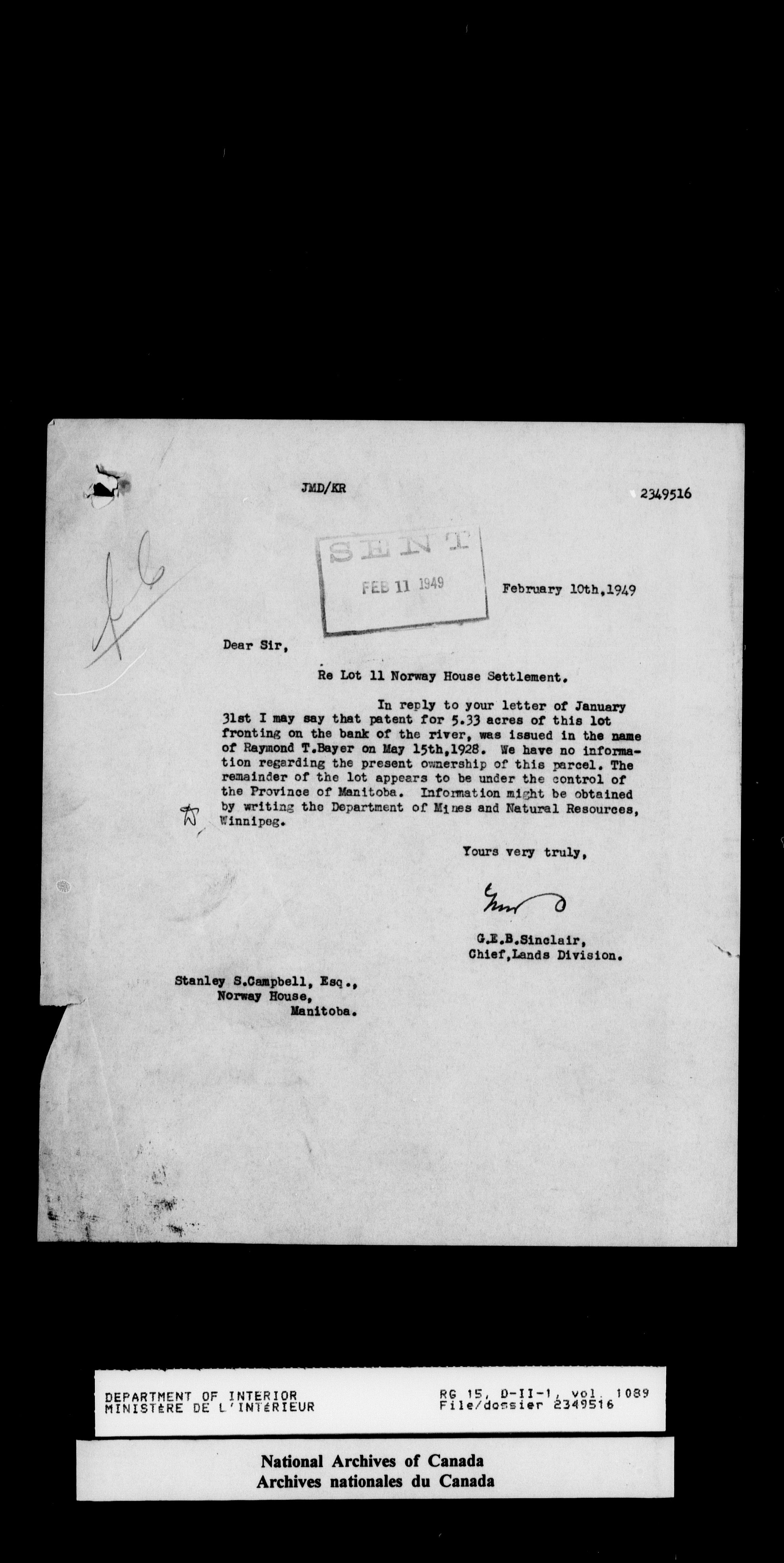 Central registry subject files created by the Dominion Lands Branch - 14654