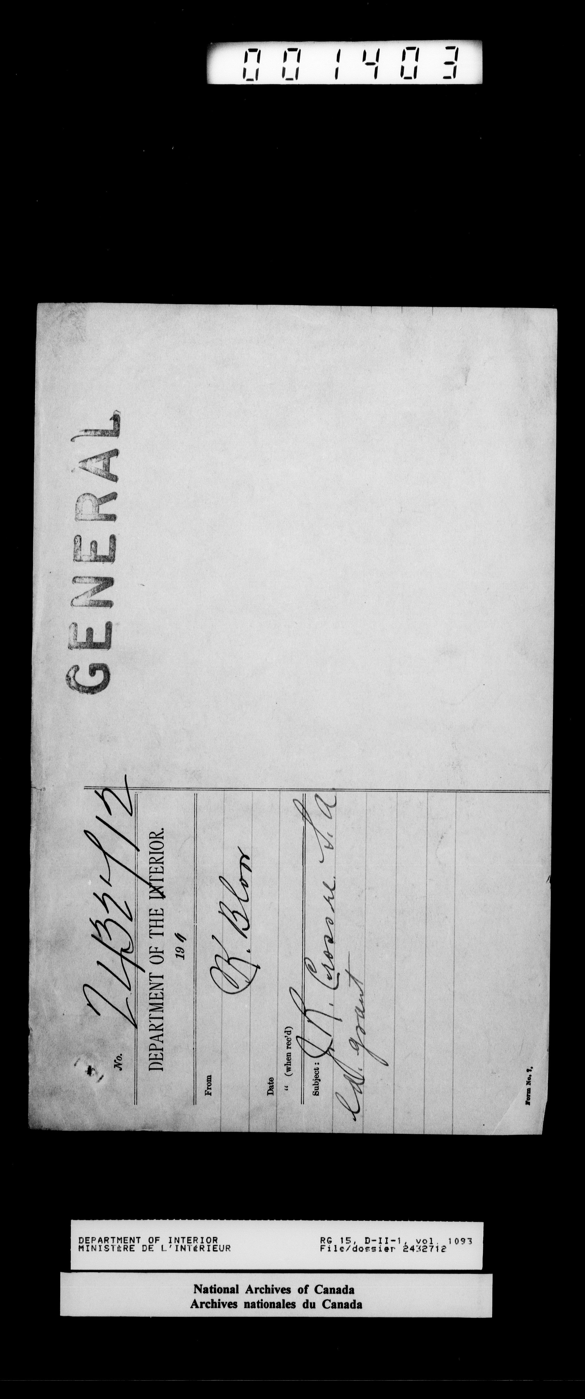 Central registry subject files created by the Dominion Lands Branch - 14656