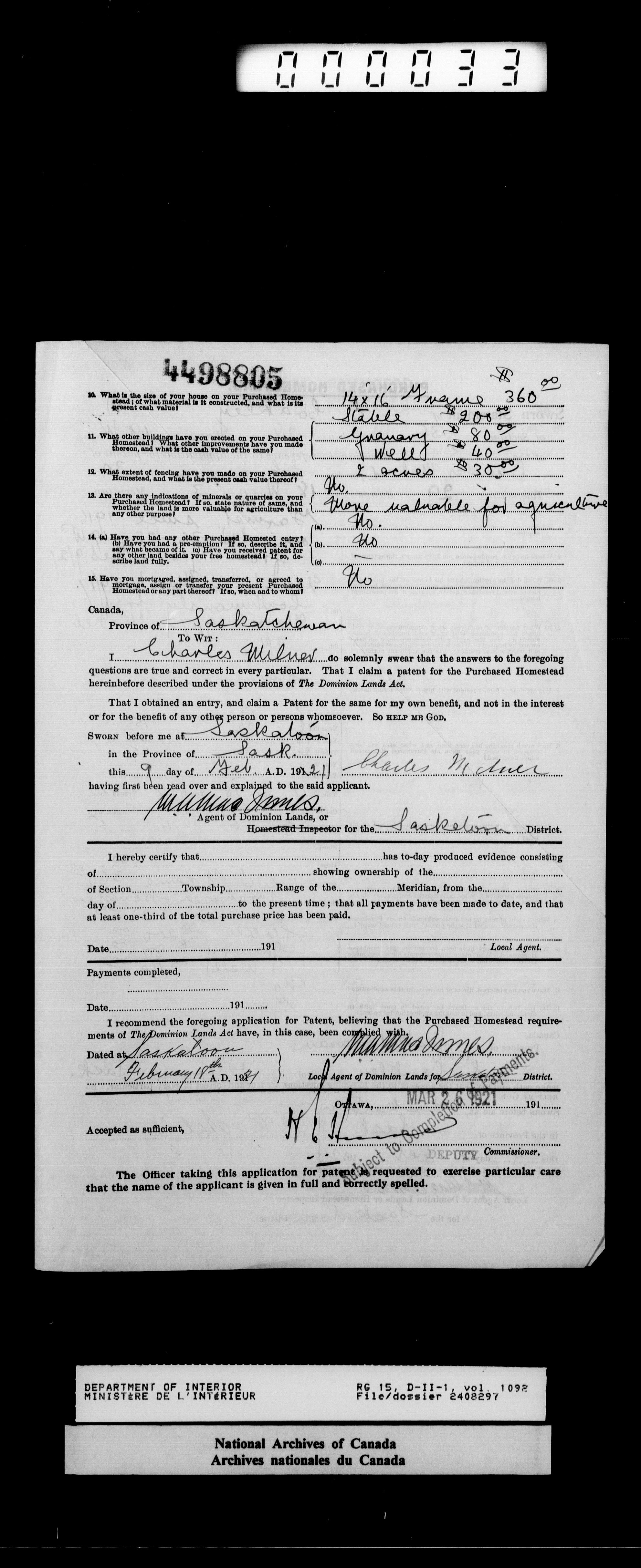 Central registry subject files created by the Dominion Lands Branch - 14656